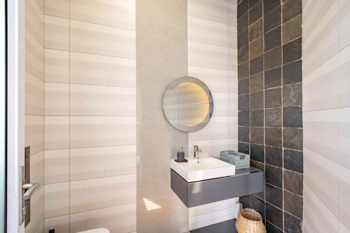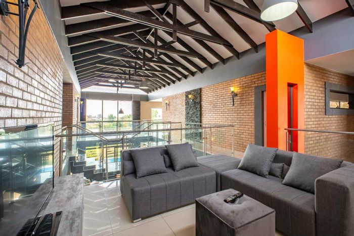 This modern and contemporary masterpiece in the prestigious Waterfall Country Village Estate is a blend of luxury, functionality, and sustainability. From the moment you step into the grand double-volume entrance, you are greeted with a sense of space and elegance. To your left, a stylish staircase ascends to the upper level, while to your right, a double garage equipped with a Tesla solar system ensures the home operates 98% off-grid, highlighting its eco-conscious design.