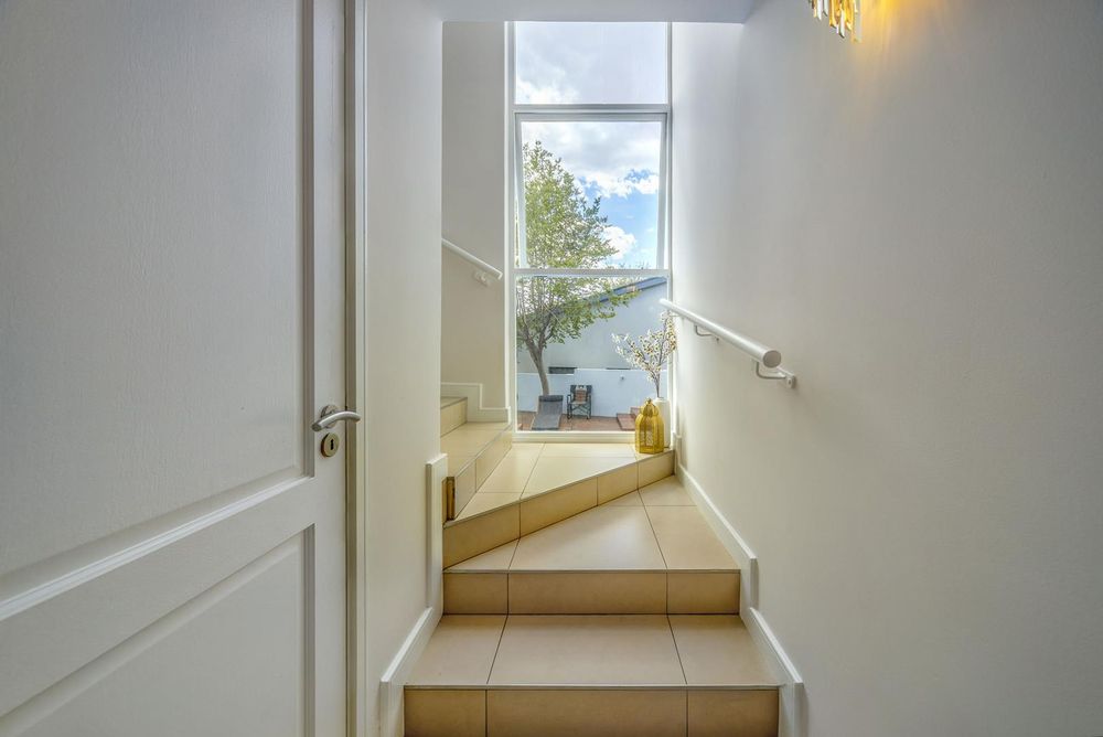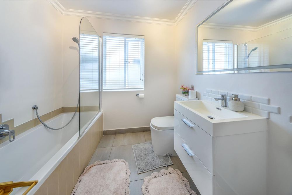 The ground floor also includes a luxurious guest suite with garden access, complemented by a bathroom with both a shower and a bath. For convenience, there is a guest toilet and a large storeroom cleverly tucked under the staircase.