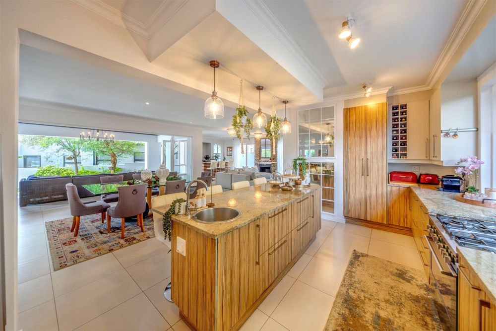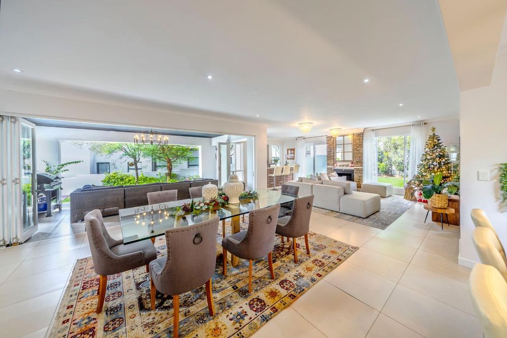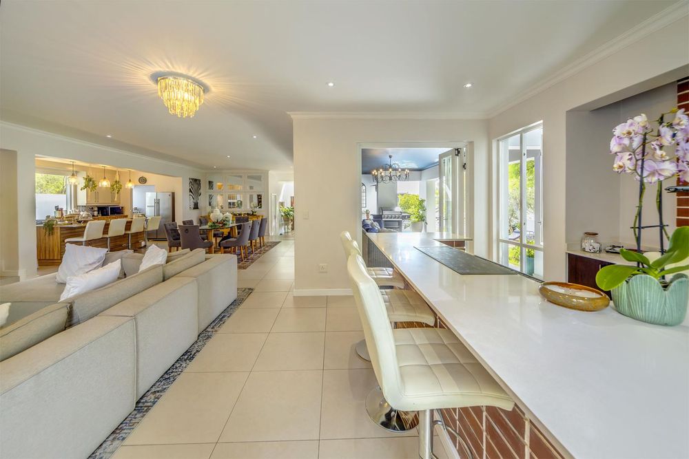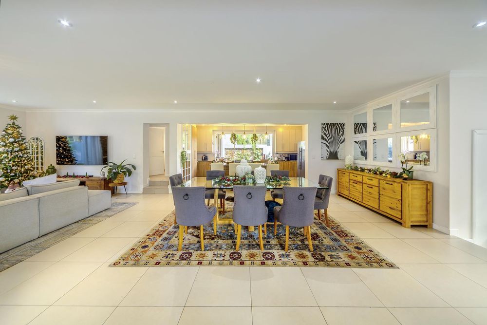 The open-plan layout on the ground floor is designed for seamless living and entertaining. The dining area flows effortlessly into a state-of-the-art kitchen, which boasts a unique feature, a large stacking window that opens completely, inviting light and fresh air into the space and the kitchen has a seperate scullery.