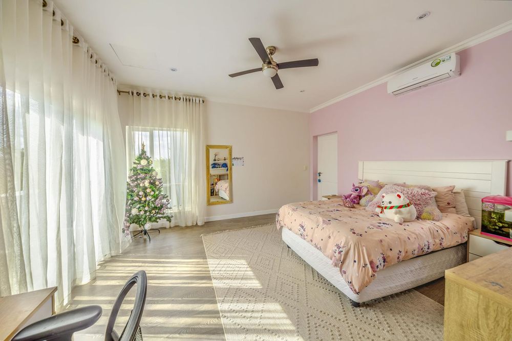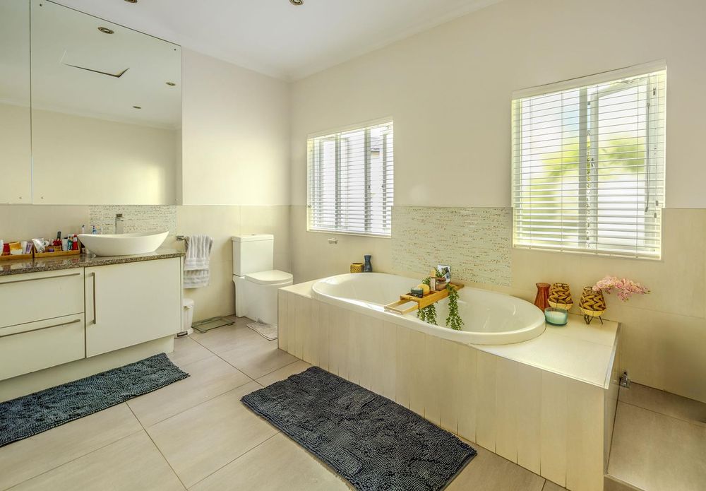 Every bedroom, along with the TV lounge, is equipped with energy-efficient inverter air conditioners. The home’s eco-friendly features extend beyond energy, with a 3,000-liter water backup system that includes full filtration and UV treatment, ensuring clean and safe water throughout the home. Two solar geysers further enhance the property’s sustainability.