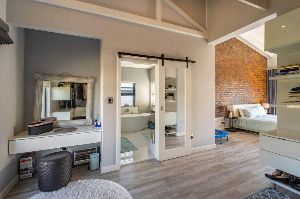 The top level hosts three well-appointed bedrooms. The luxurious main suite features a walk-in closet, custom dressing table, full en-suite bathroom, and private balcony. The second bedroom offers an en-suite shower and shares a balcony with the main bedroom, along with access to a unique loft area, ideal for a study or reading nook. The third upstairs bedroom also enjoys an en-suite shower and its own loft space, offering flexibility and charm.