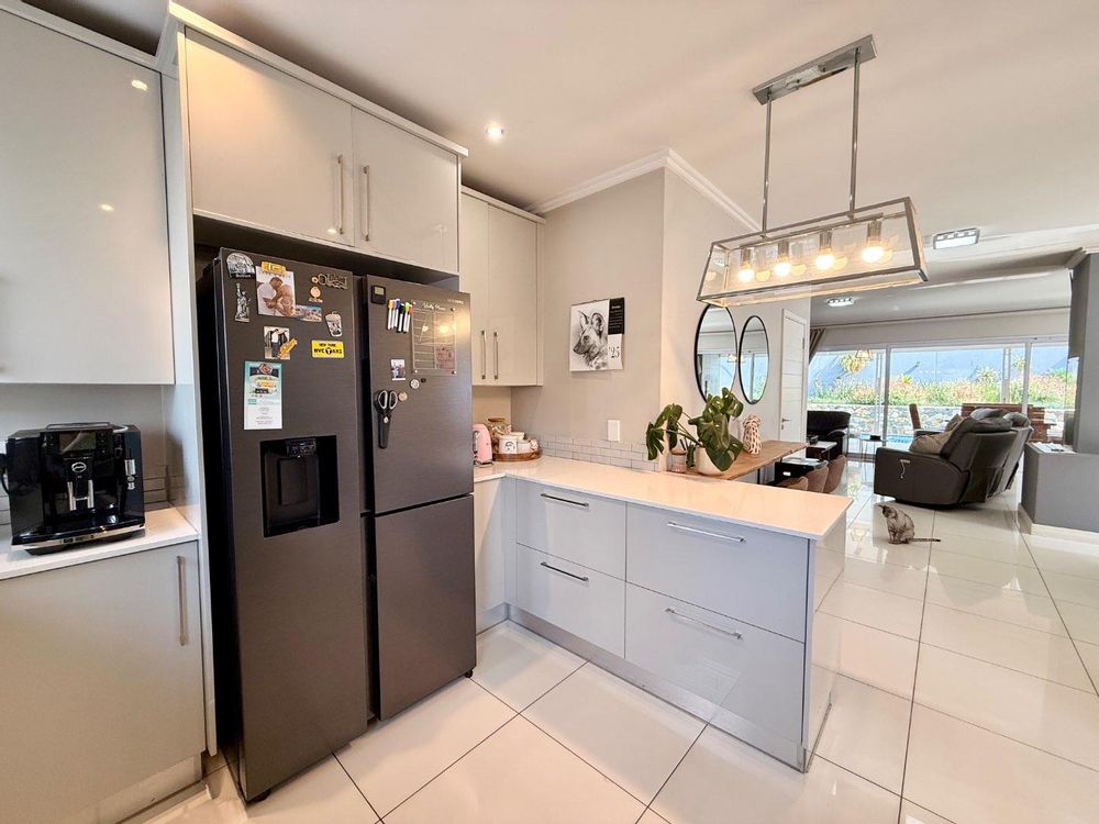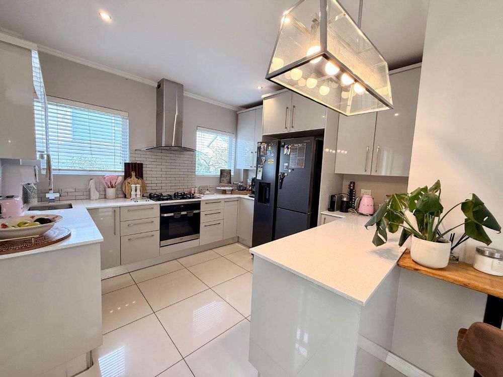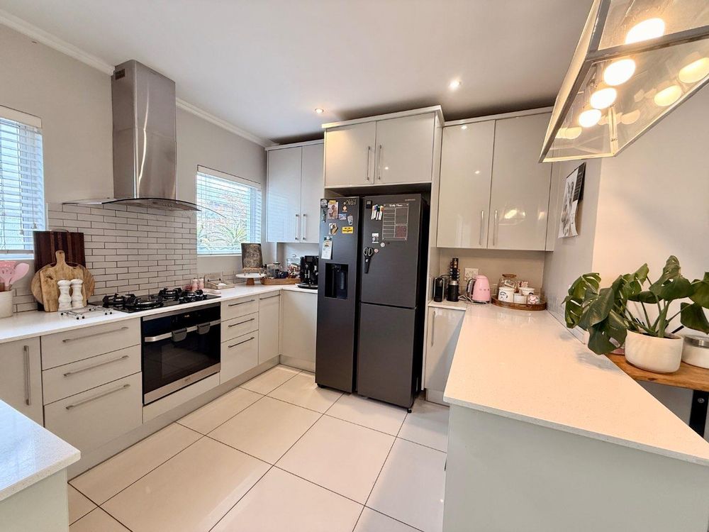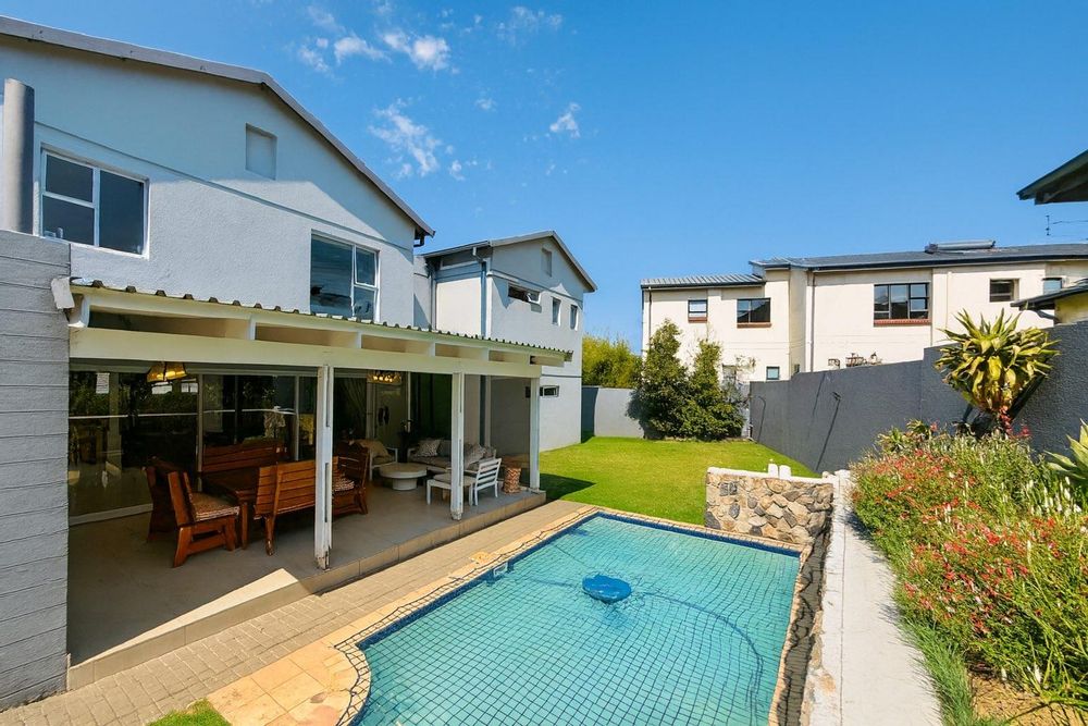 The kitchen is both practical and elegant, featuring a separate scullery and timeless neutral finishes. Large sliding doors open up to a spacious covered patio with a built-in braai, perfectly set for entertaining while overlooking the sparkling pool and lush landscaped garden.