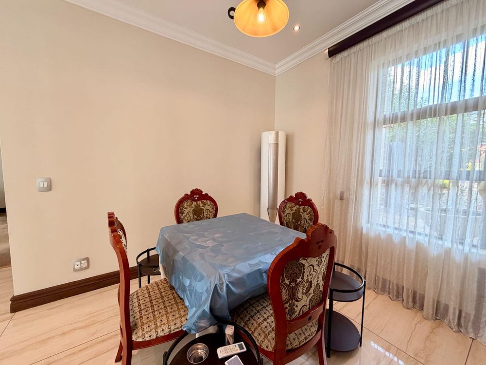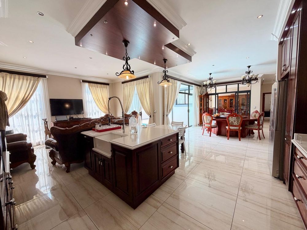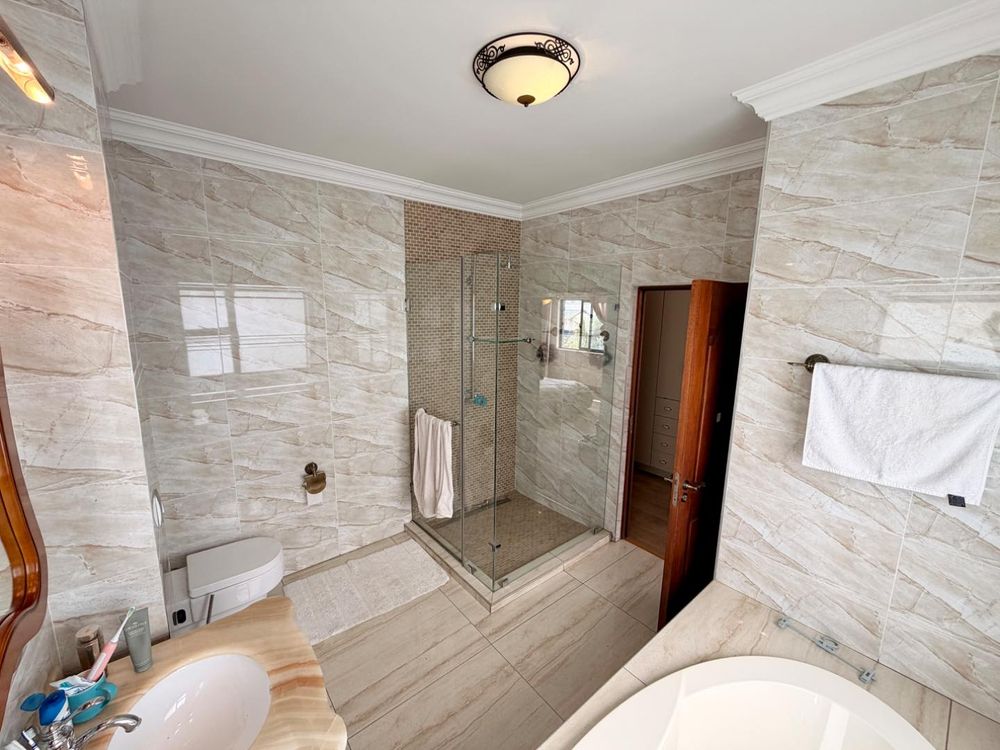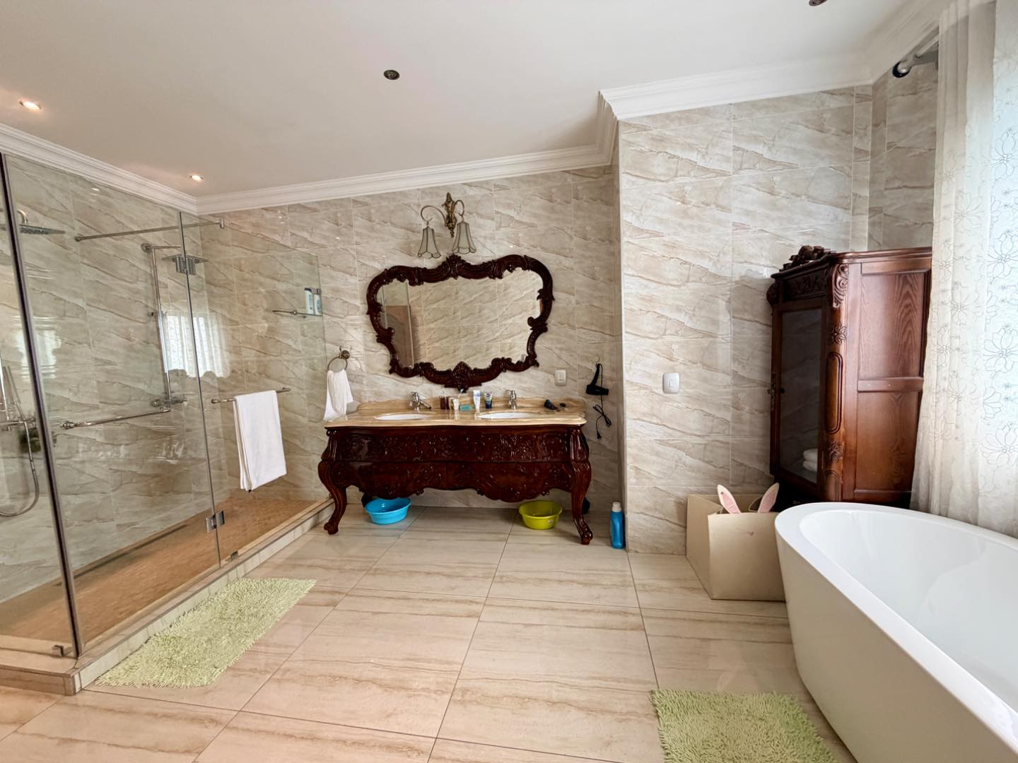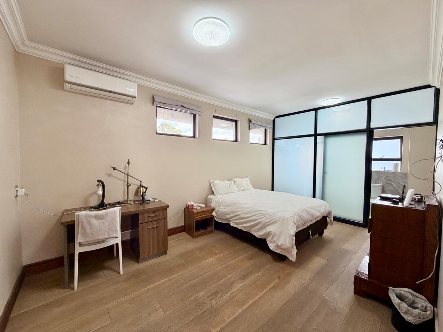 To the right of the entrance, an enclosed covered patio creates the ideal indoor-outdoor entertainment area. Fully closable from both sides and fitted with a gas braai, it’s perfect for year-round entertaining.