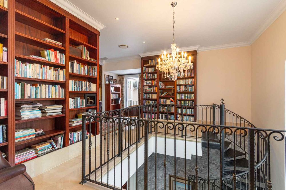 - A double-volume library & study with spiral staircase