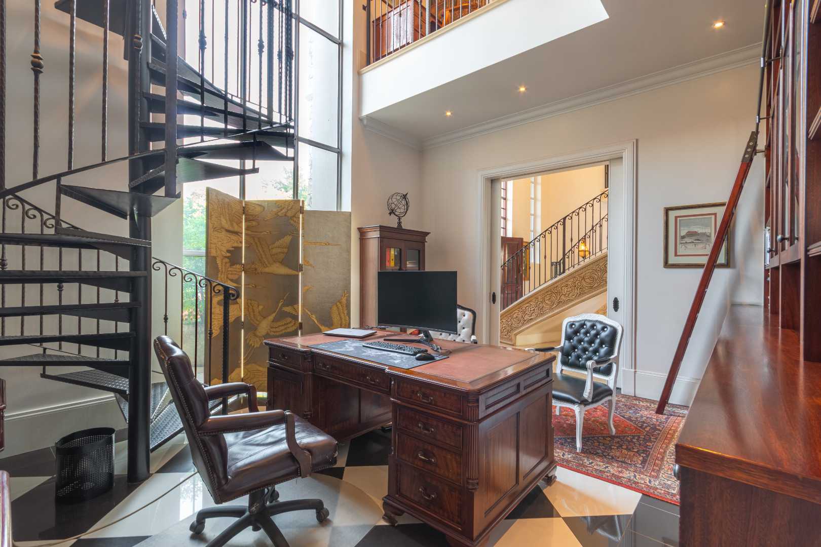 - Private study, and covered balcony overlooking lush gardens and a koi pond