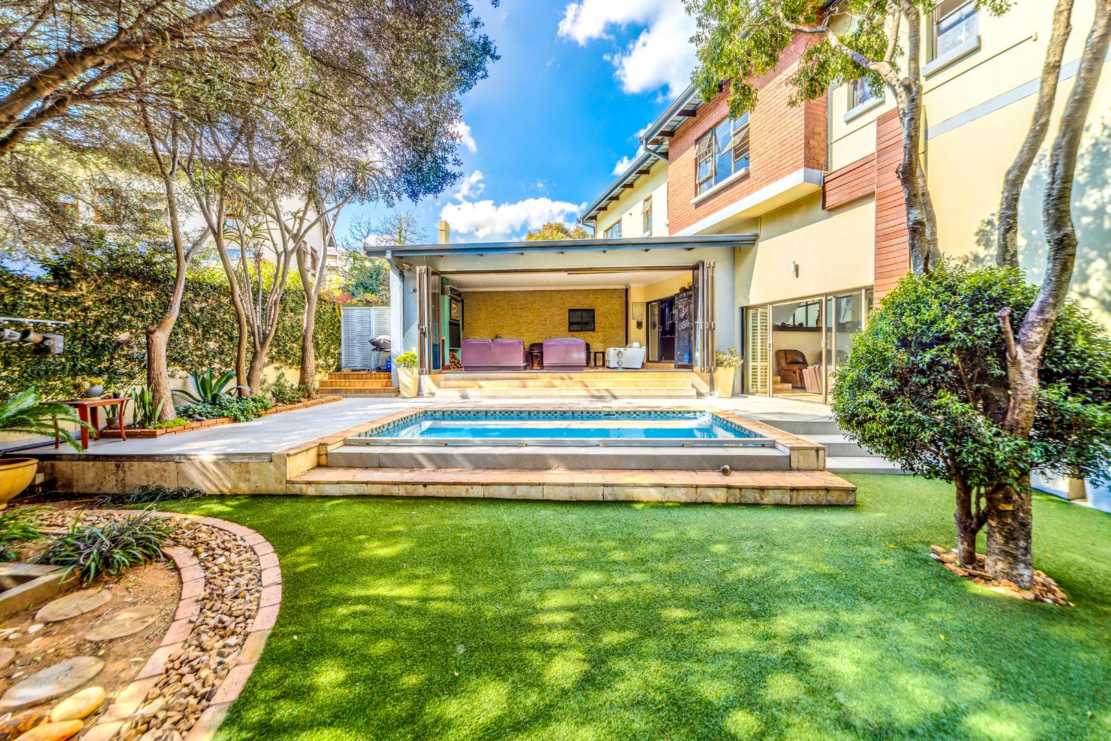 Outdoors, leisure and lifestyle unite. A heated swimming pool with safety cover, traditional boma braai and lush landscaping invite gatherings both intimate and grand. Dual staff accommodations, rainwater harvestin and cutting-edge security, including beams, alarm system and 16-camera CCTV, ensure seamless functionality and peace of mind.