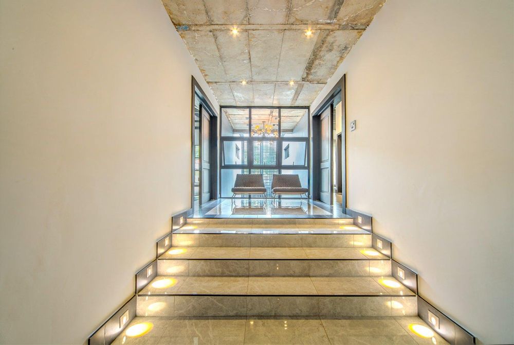 Step through the grand entrance, where sleek lines and minimalist design beckon residents and guests alike. Floor-to-ceiling windows flood the interiors with natural light, offering panoramic views of lush greenery.