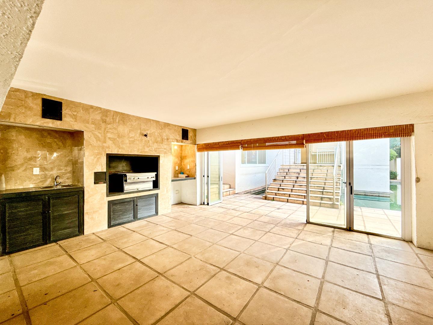 From the sweeping driveway to the double-volume entrance hall, the home opens up to a series of interconnected living spaces: formal lounge, family TV room and dining room, each flowing effortlessly onto a covered entertainer’s patio overlooking the manicured garden and pool. A dedicated braai room and cinema room complete the entertainment offering.