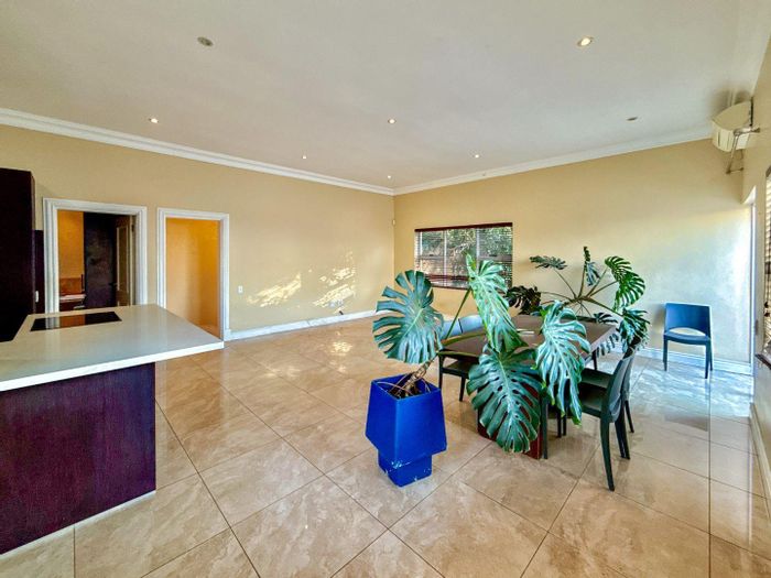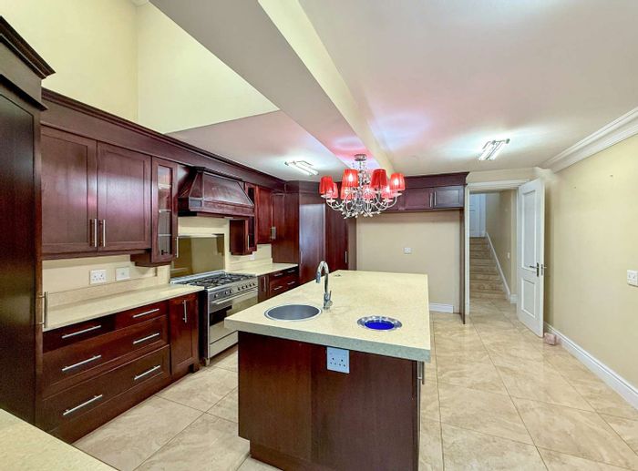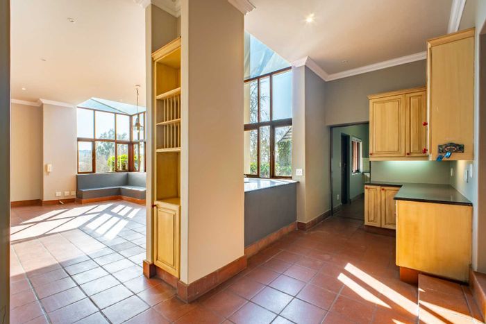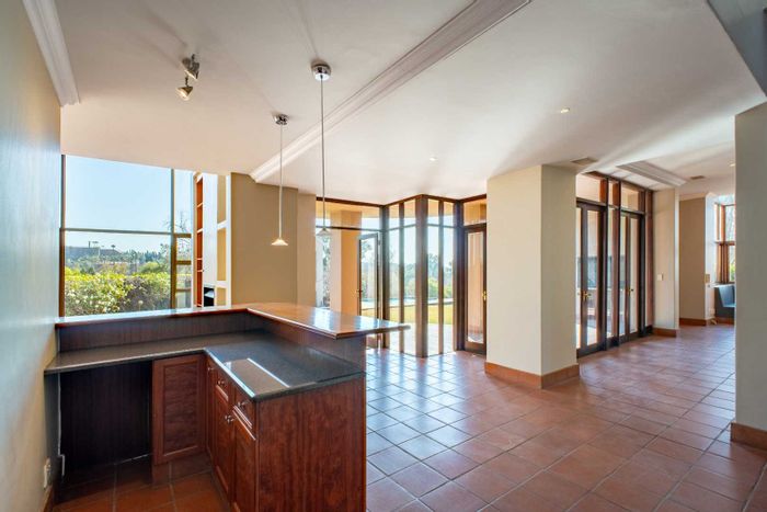 Upon arrival, guests are greeted by an impressive grand staircase leading into an inviting reception area, setting the tone for a luxurious stay. The open-plan kitchen and dining area provide a seamless flow and offer breathtaking vistas over Pretoria and beyond, making every meal a memorable experience.