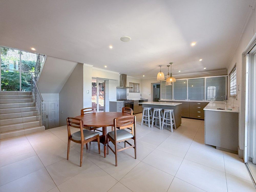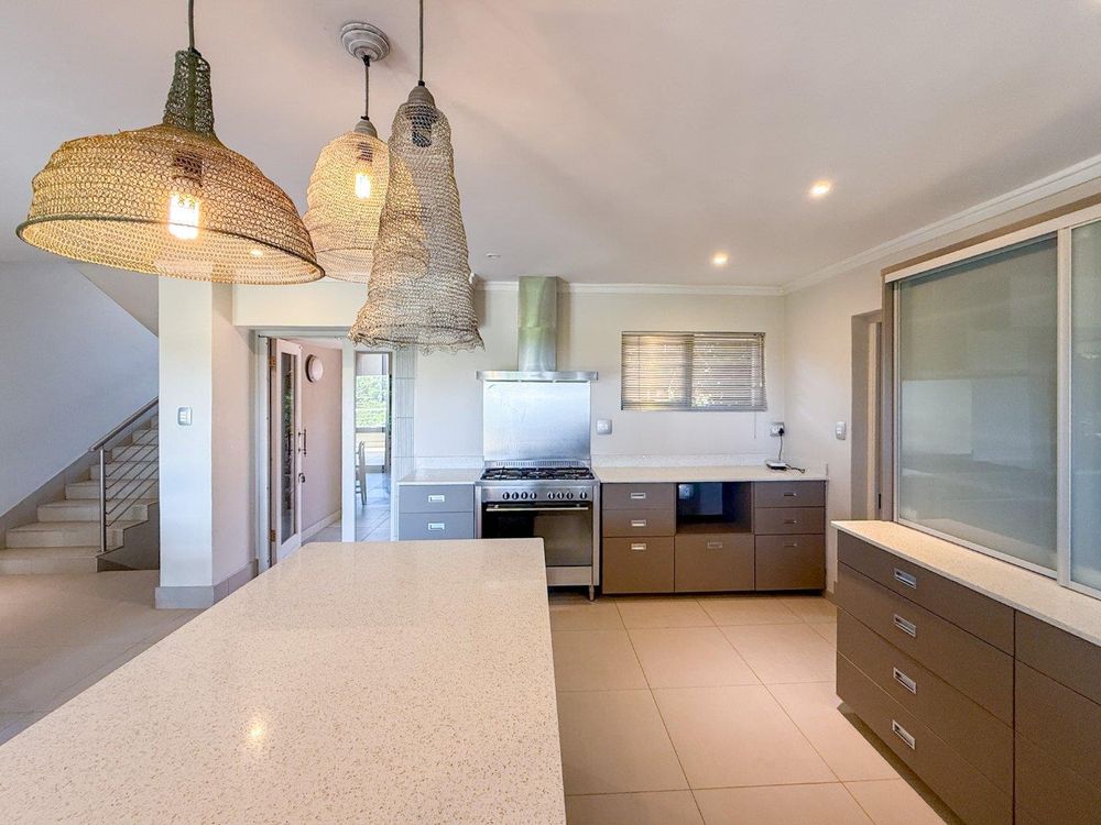 Open-plan living areas flow seamlessly between the kitchen, dining, and lounge, creating a natural rhythm ideal for both family life and refined entertaining. The designer kitchen is as functional as it is beautiful, fitted with premium finishes, ample cabinetry, and a separate scullery.