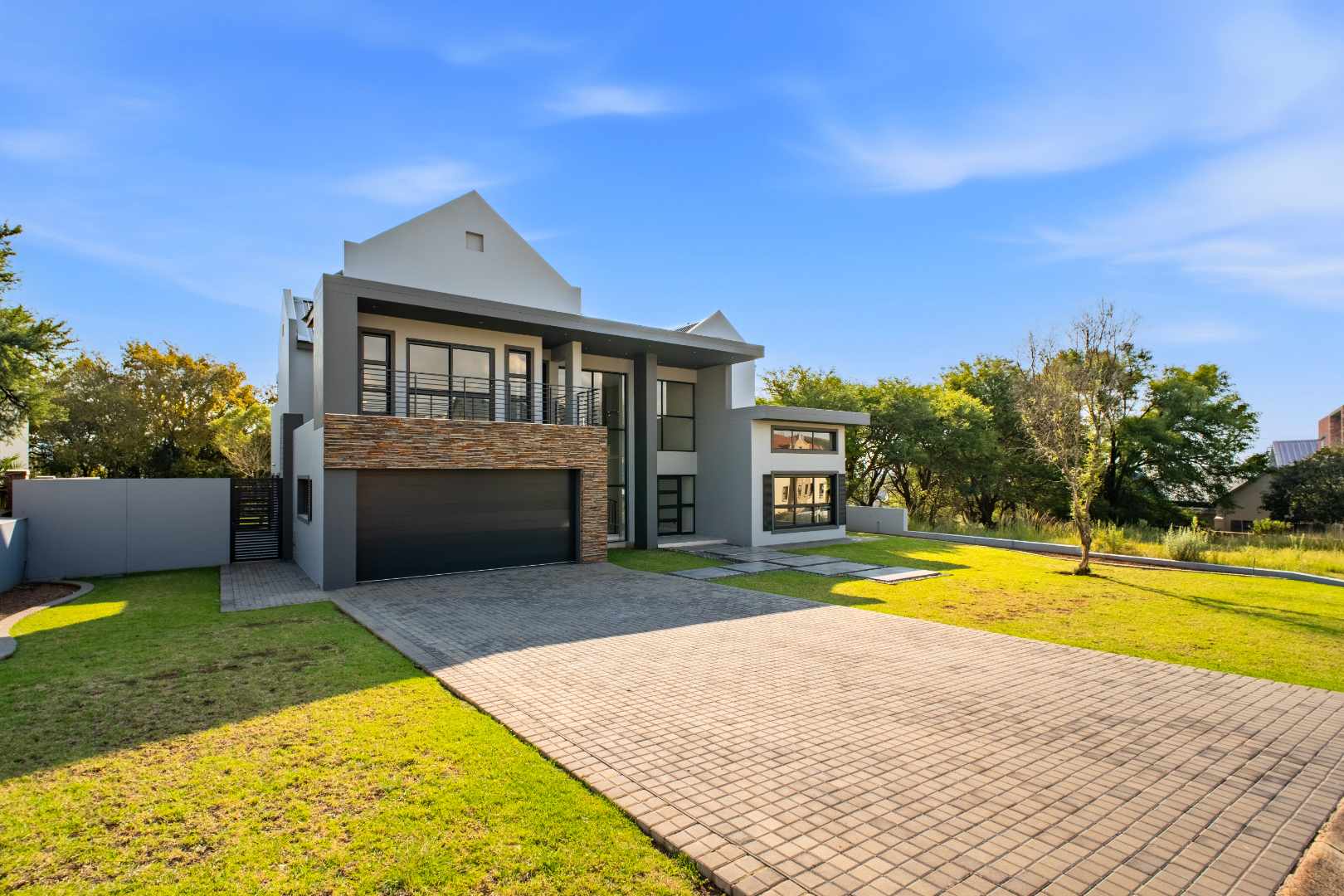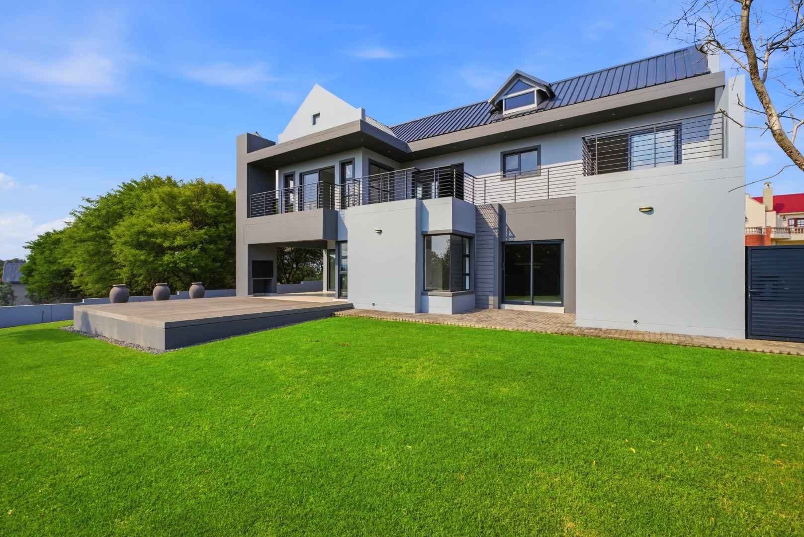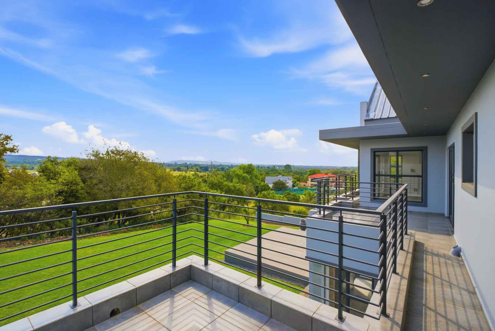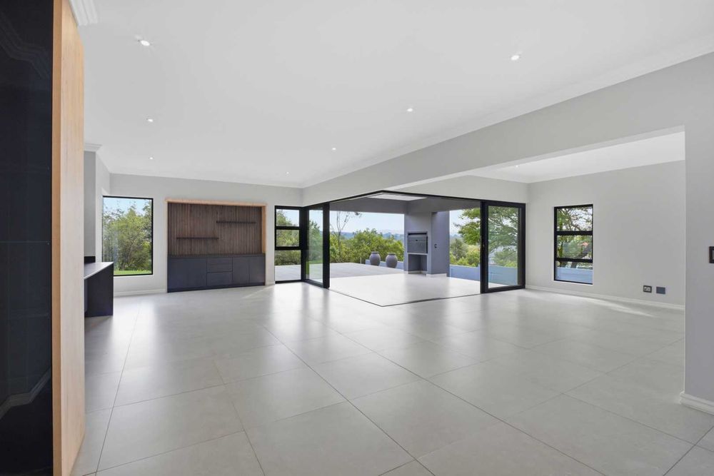 The home itself is a masterpiece of modern contemporary design, perfectly positioned to take advantage of its stunning surroundings. Located on an elevated site above the dam, it is bordered by a lush green belt area that invites antelope to meander past, adding a touch of nature's elegance to your daily life.
