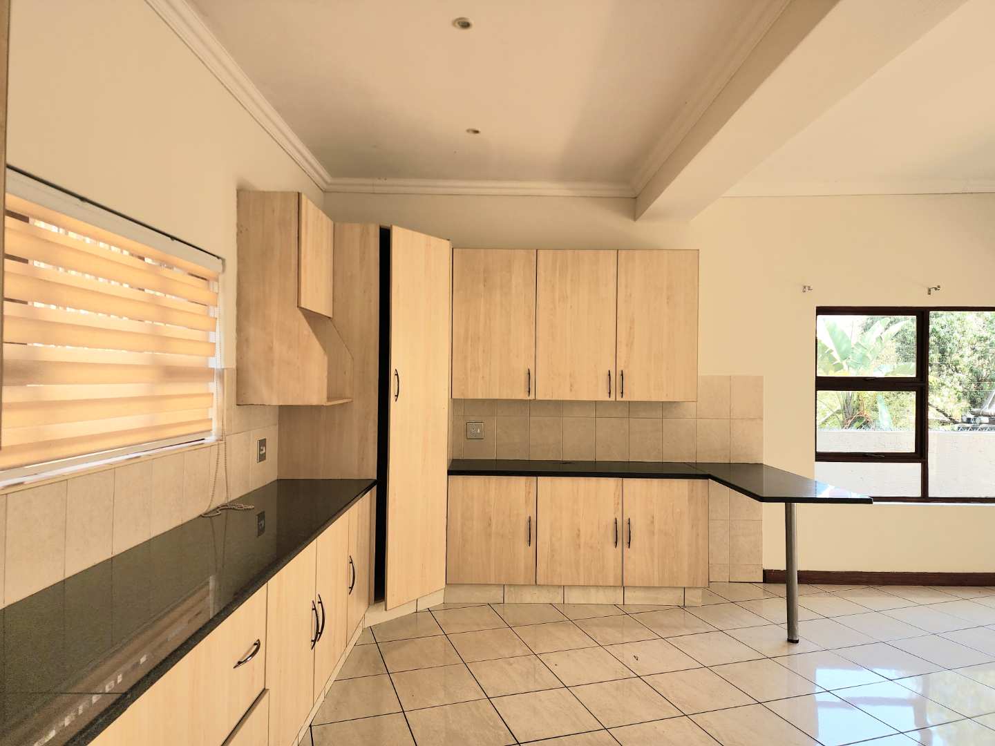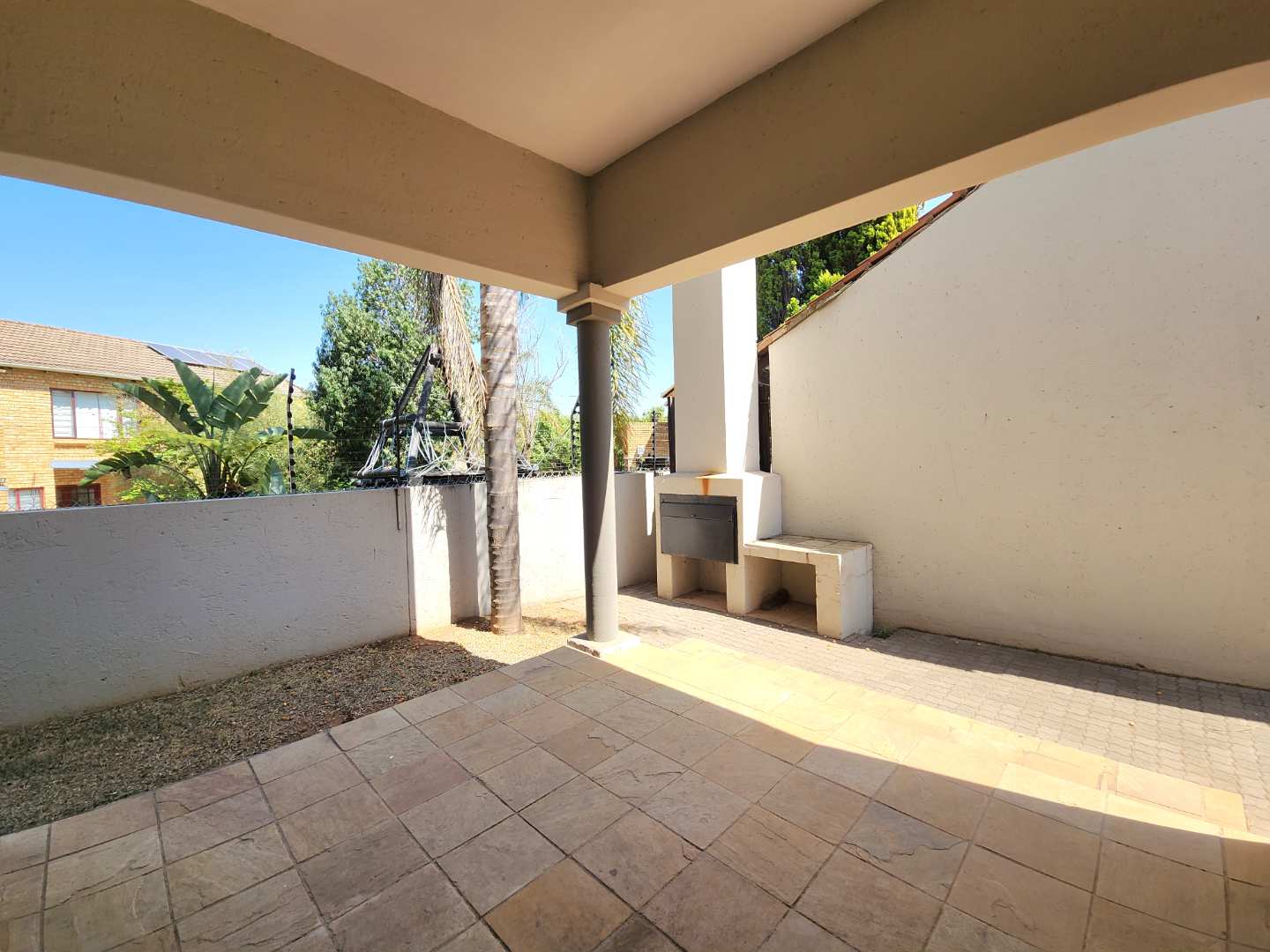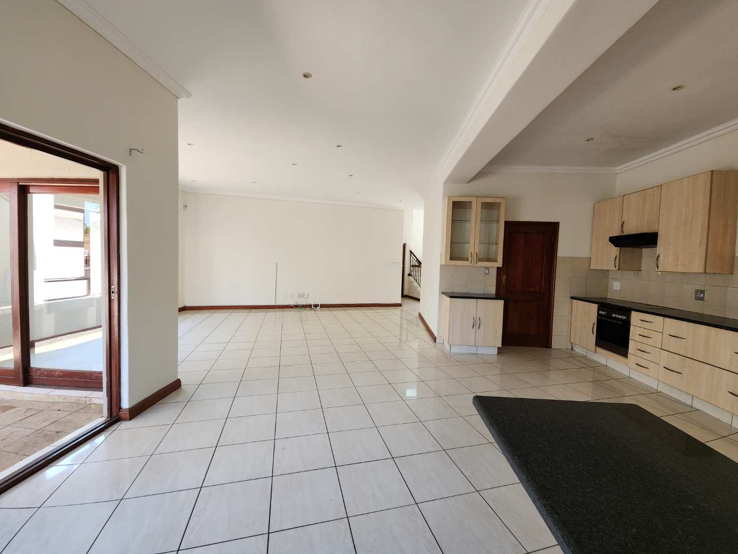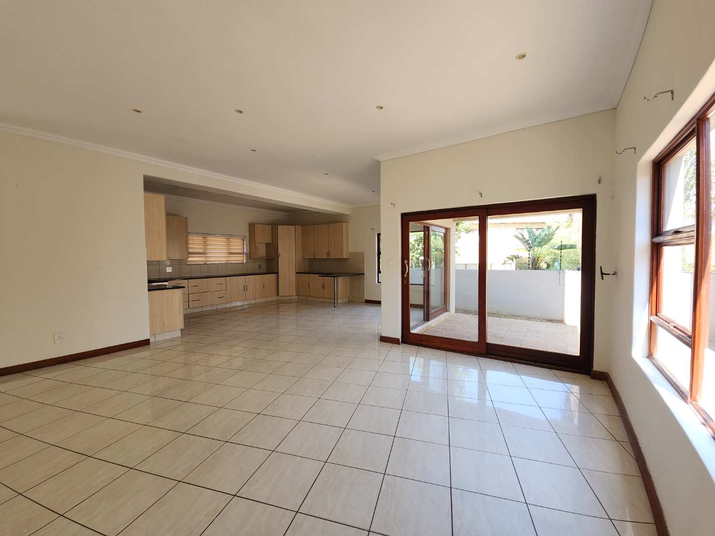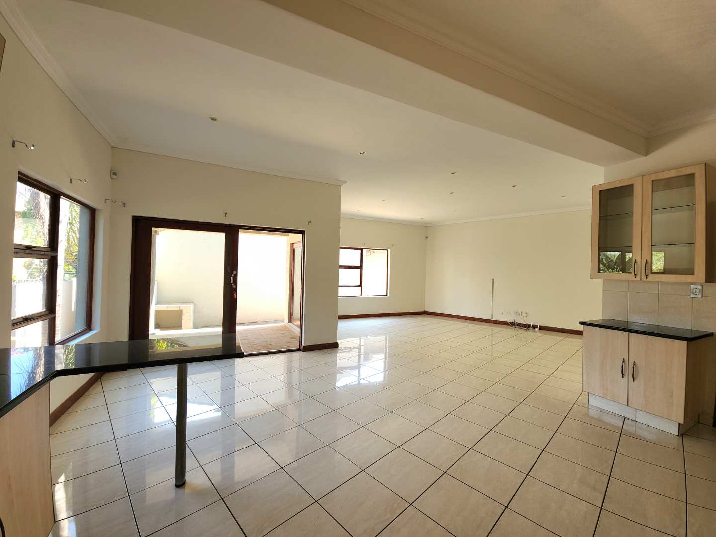 The heart of the home is a large open-plan kitchen with scullery, flowing seamlessly into the dining and lounge. From here, doors open wide to a spacious patio with built-in braai — the ultimate spot for long summer evenings and weekend gatherings.