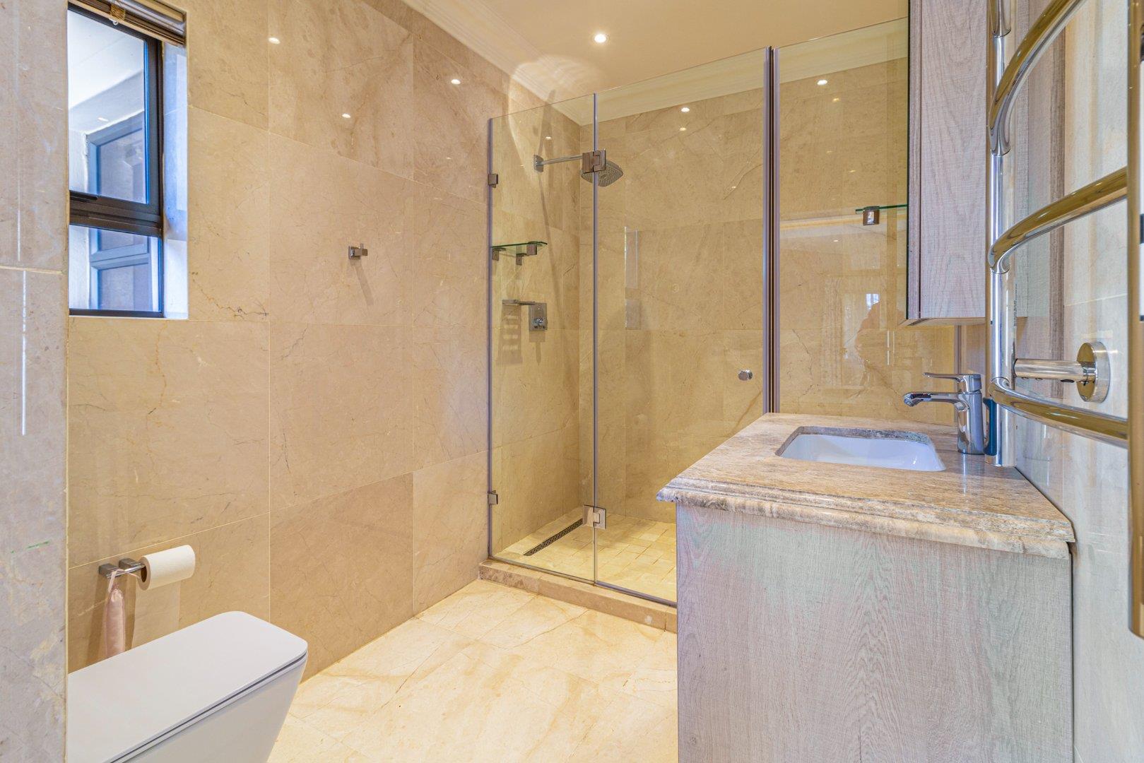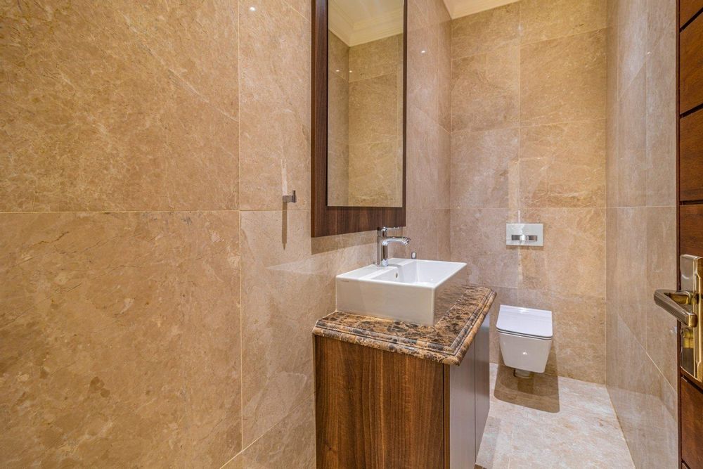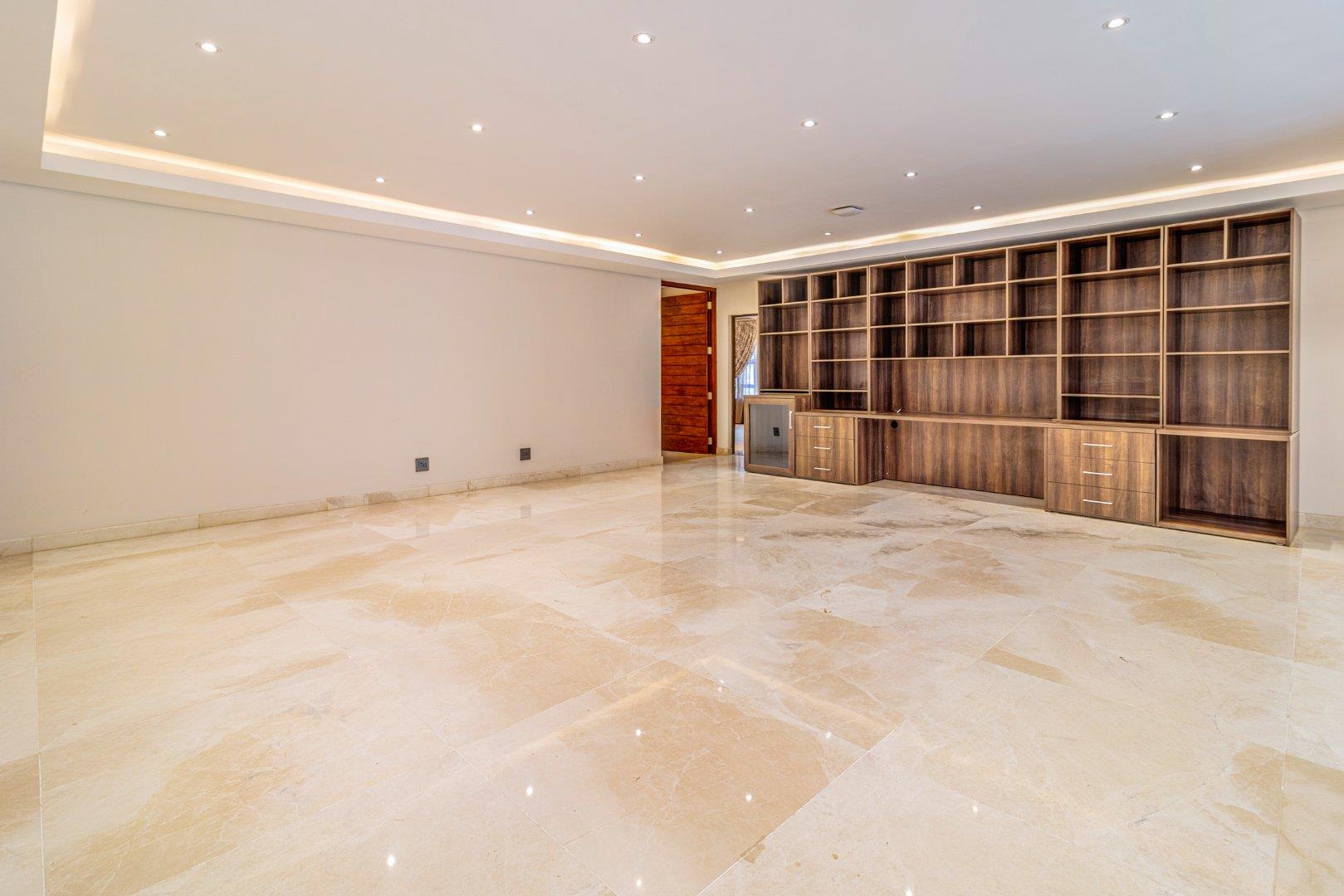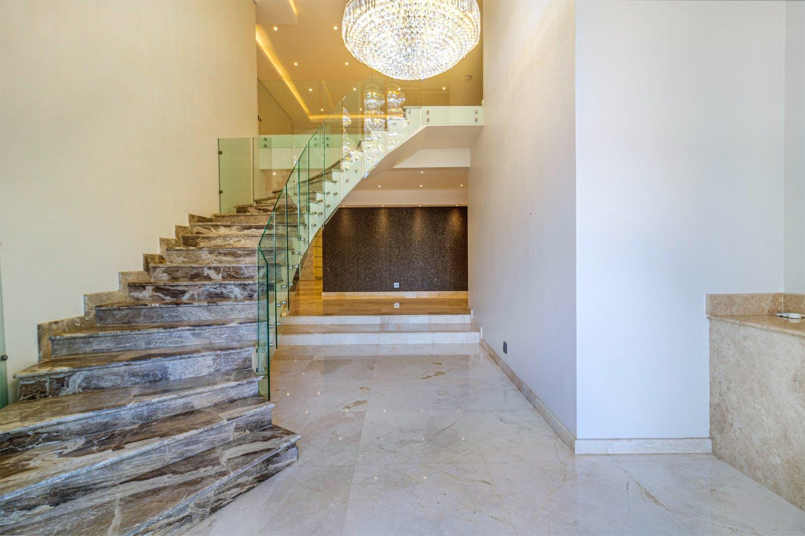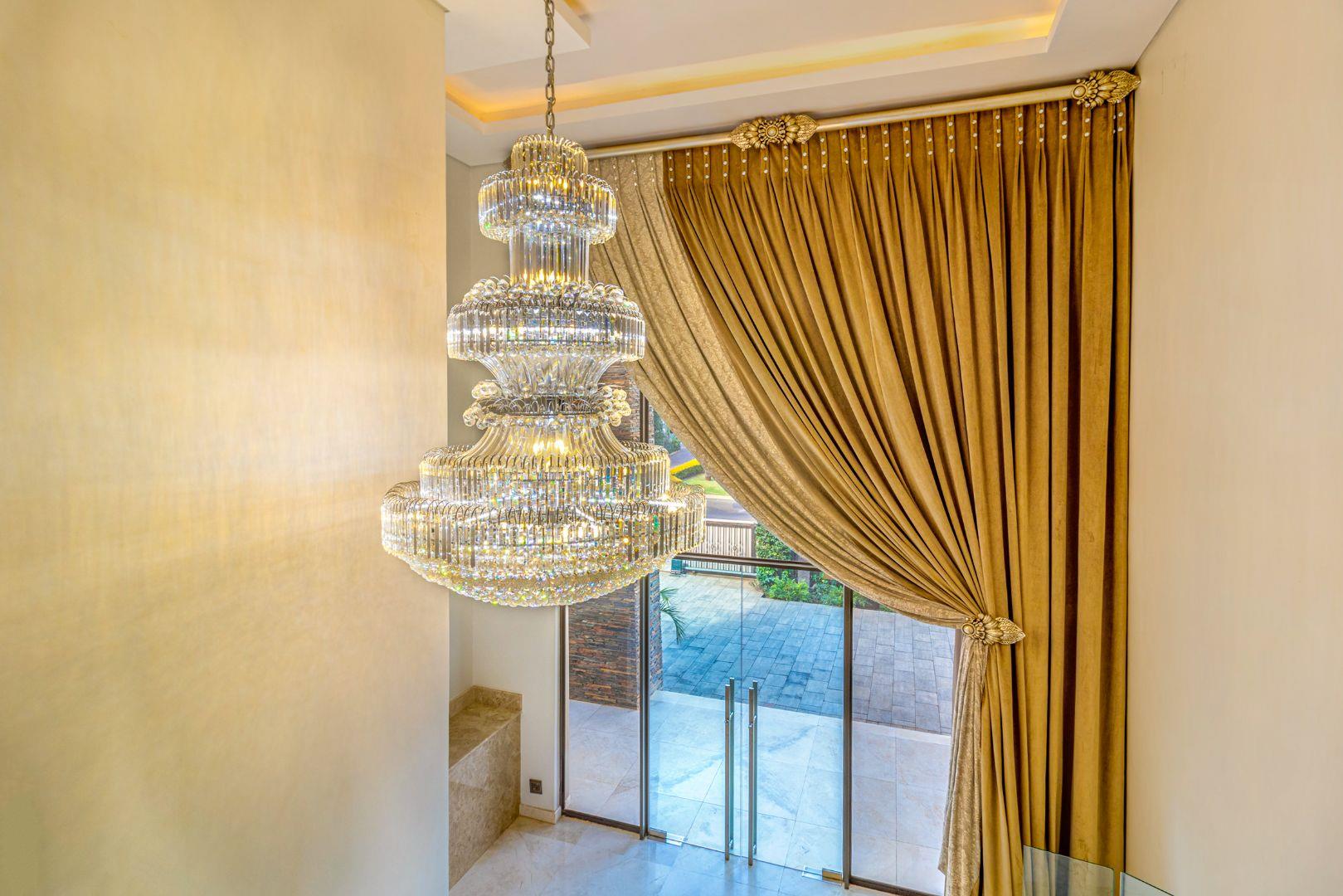 Upon entering the property, the majestic entrance curtains immediately capture your attention. The formal lounge boasts marble floors and a dazzling crystal chandelier, exuding an air of glamour. Modern touches like frameless glass balustrades and a quartz feature wall add a contemporary flair.