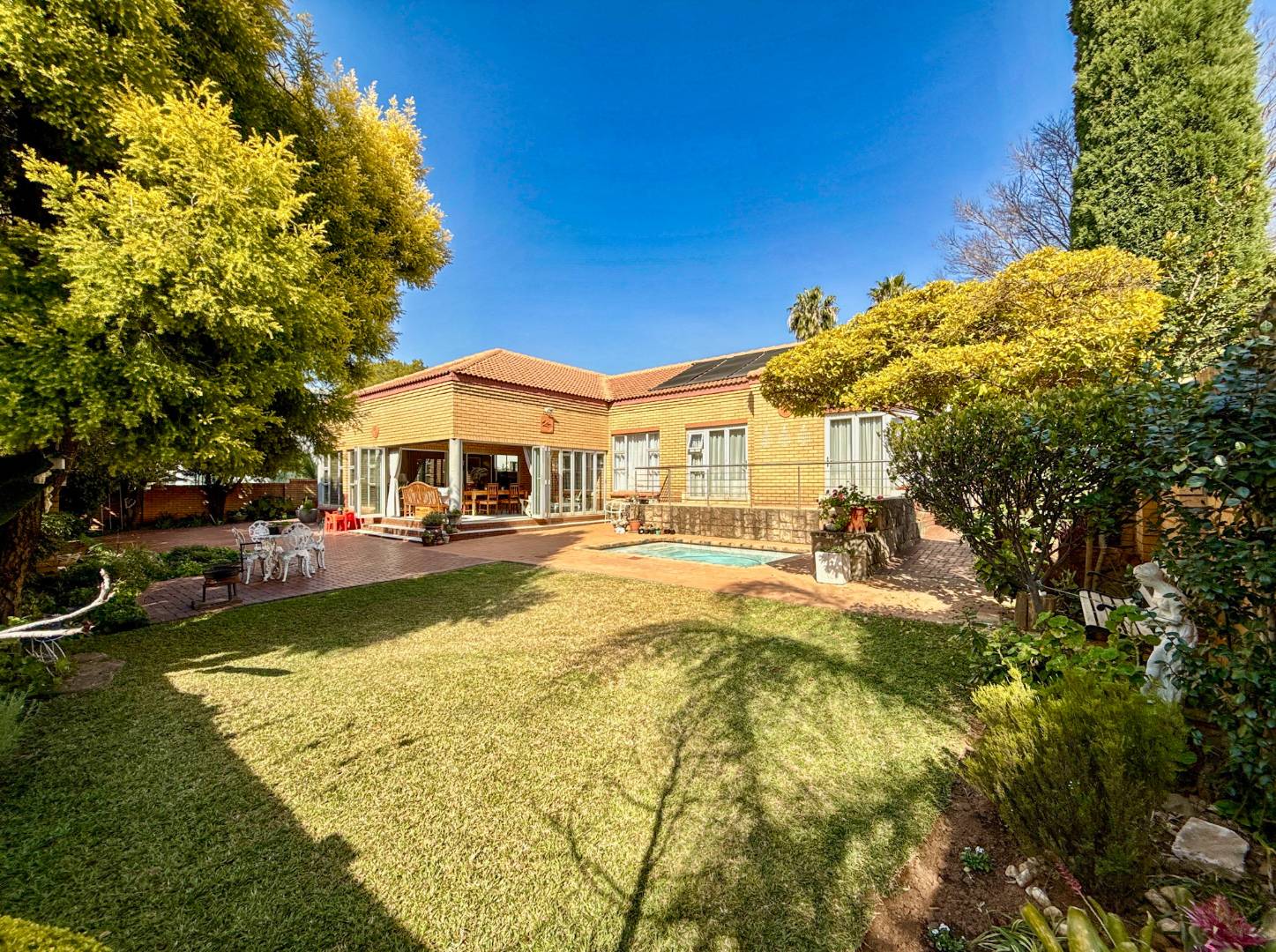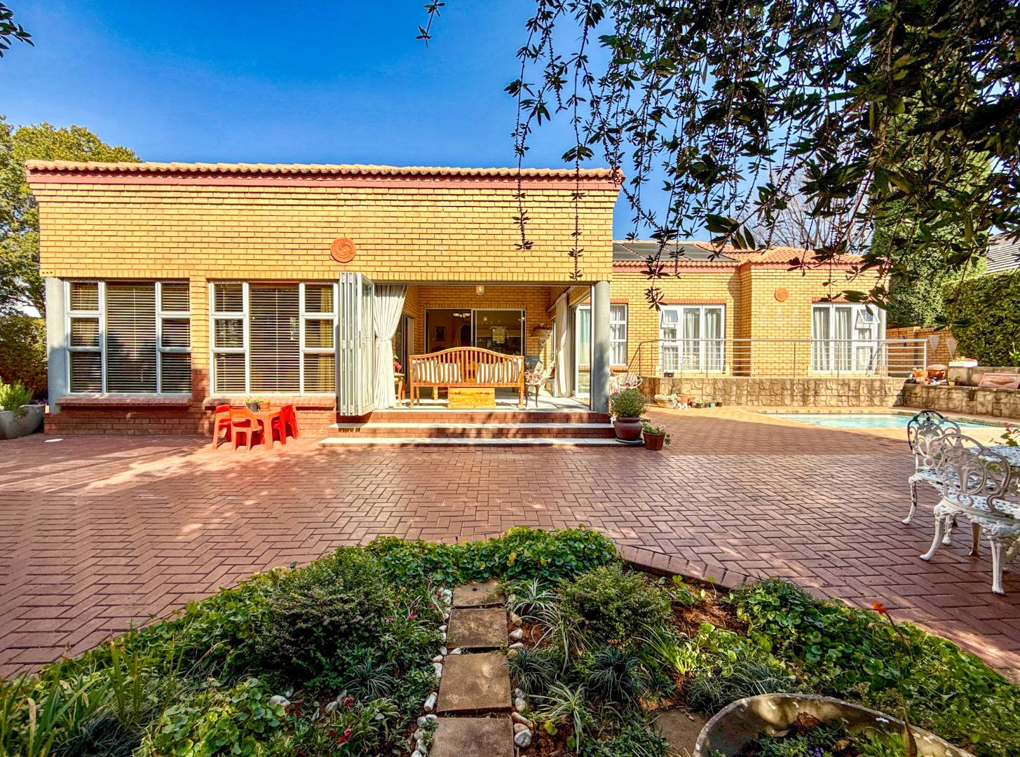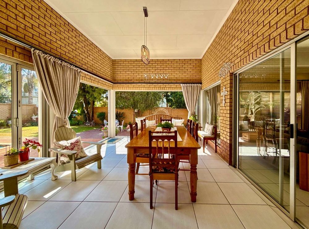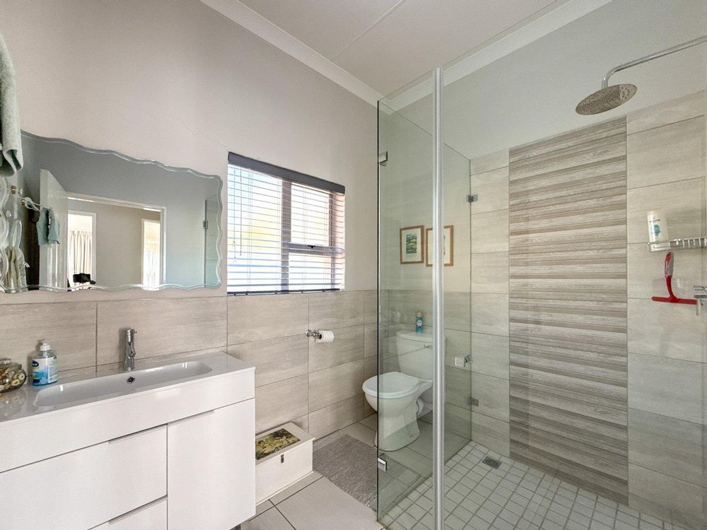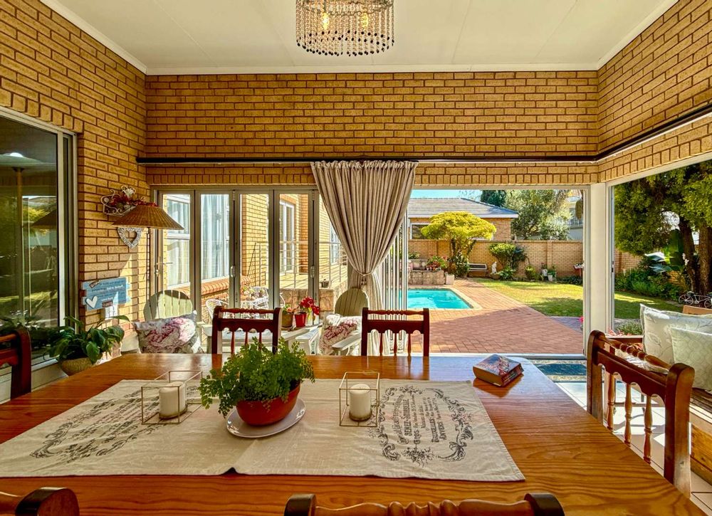 This stylish home invites you into bright, open-plan living spaces where the kitchen, complete with gas stove, flows seamlessly into the dining and lounge areas. The living space extends into a beautifully enclosed patio with stack doors, opening fully to reveal a manicured garden and a heated splash pool, the ideal backdrop for both quiet mornings and joyful gatherings.