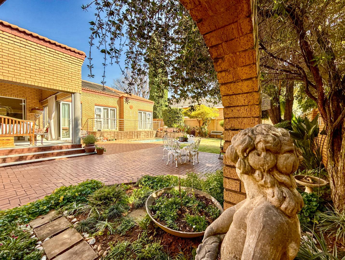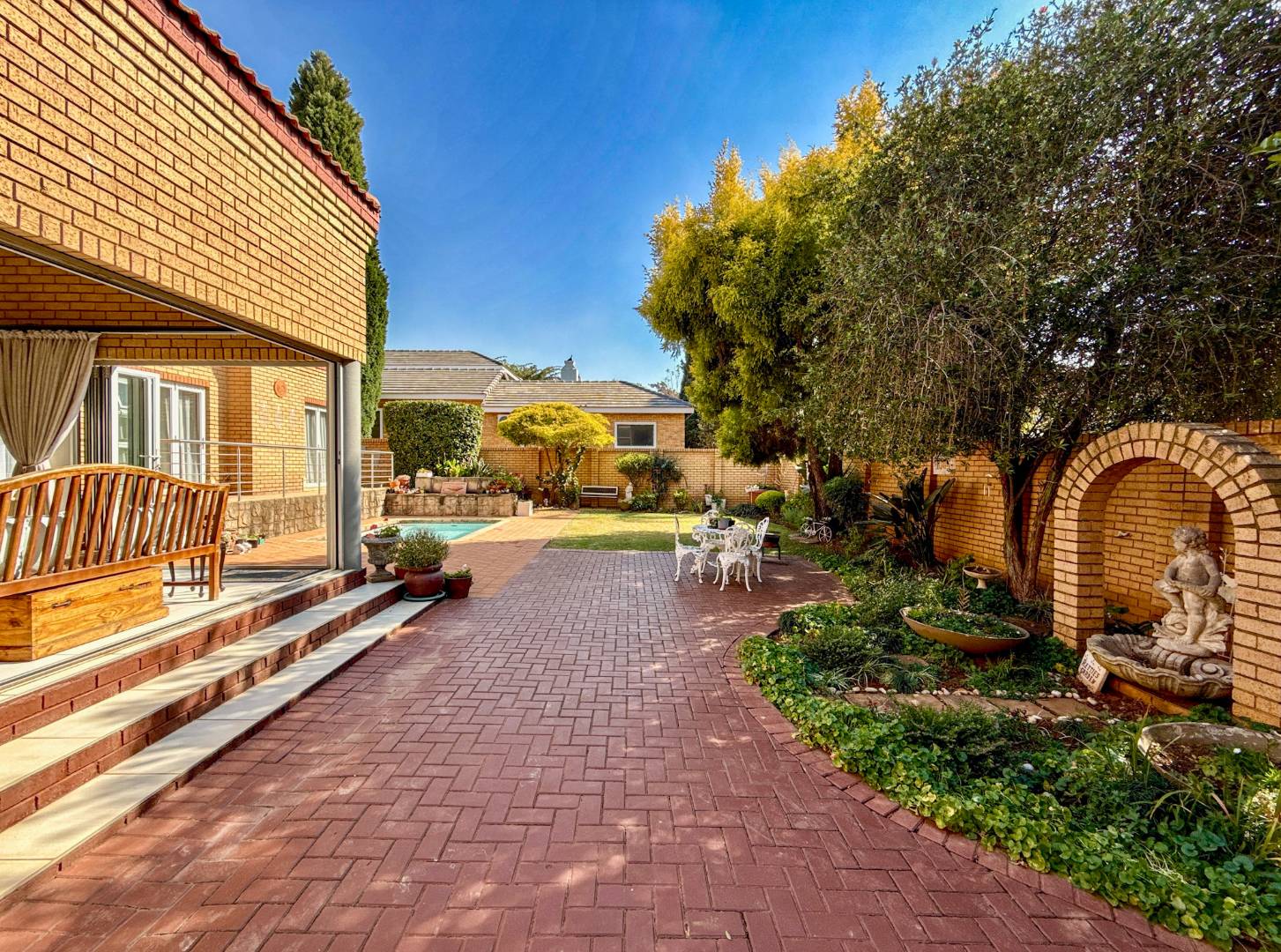 * Manicured garden and heated splash pool