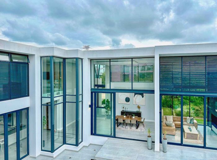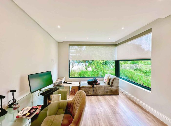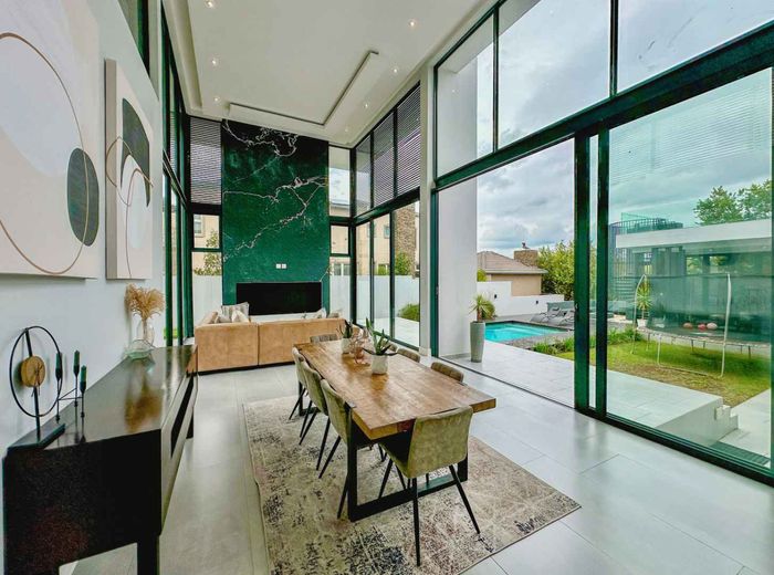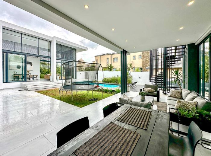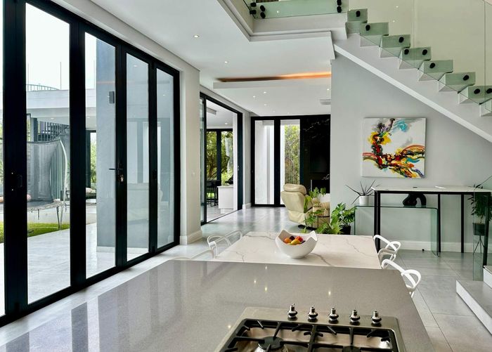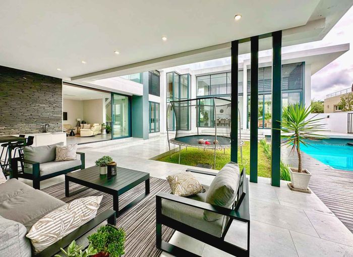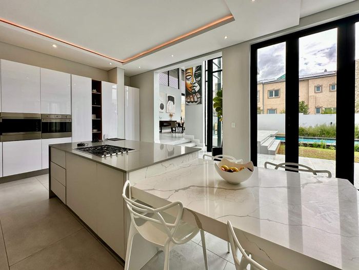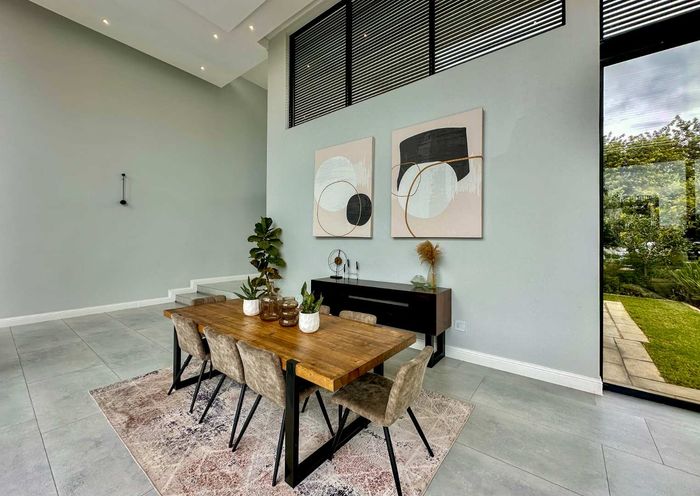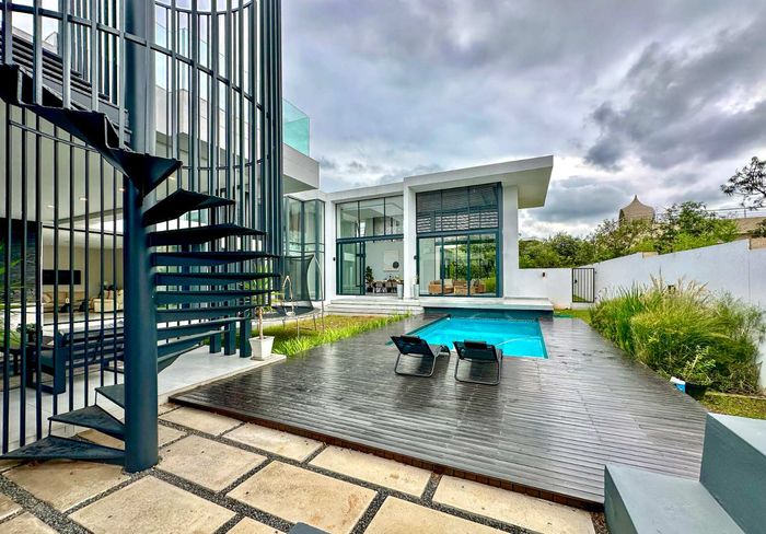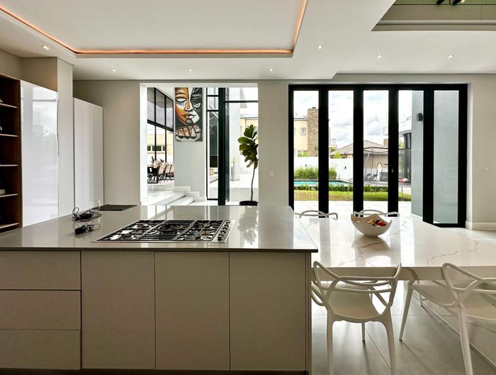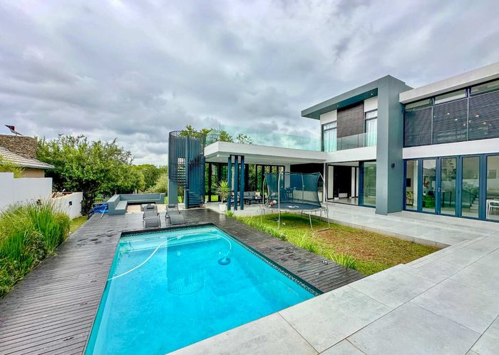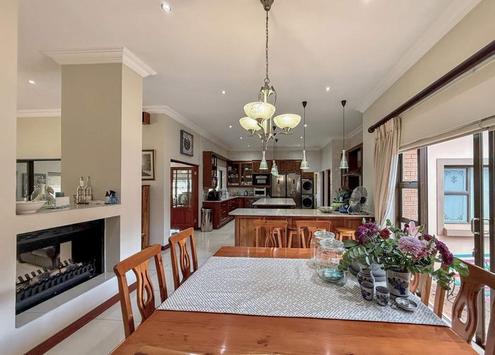 Entertainer's retreat in a peaceful Midlands Estate crescent, steps from park, pools and trails; modern kitchen flows to indoor-outdoor braai and pizza oven, with four bedrooms, four bathrooms.