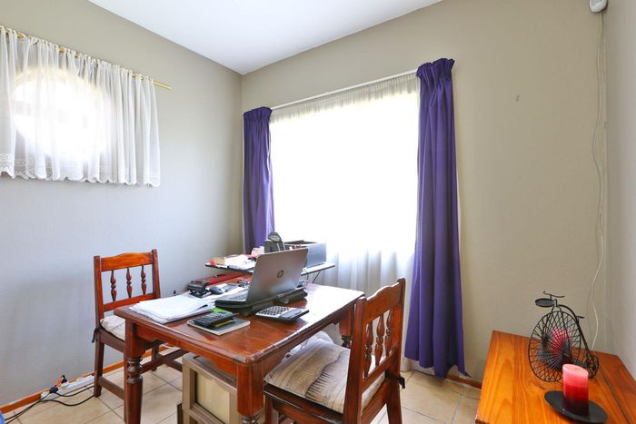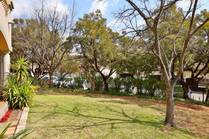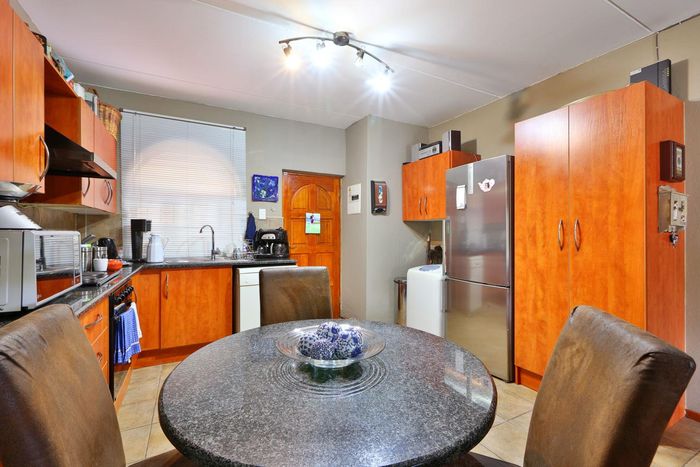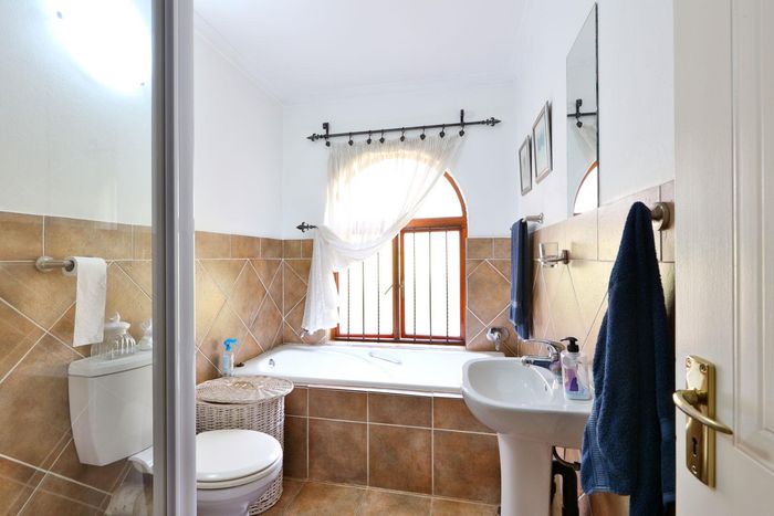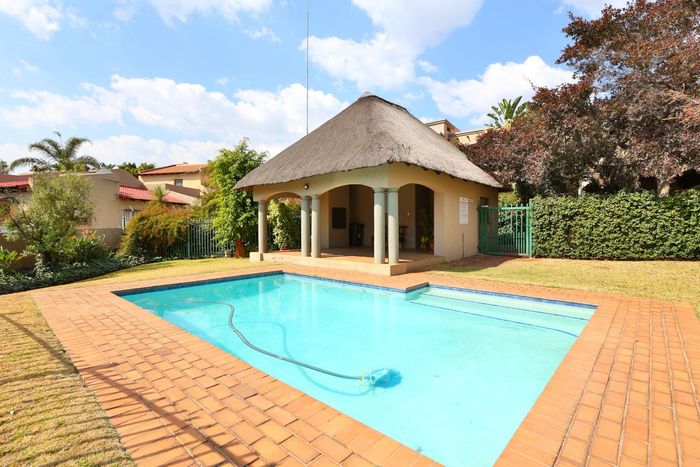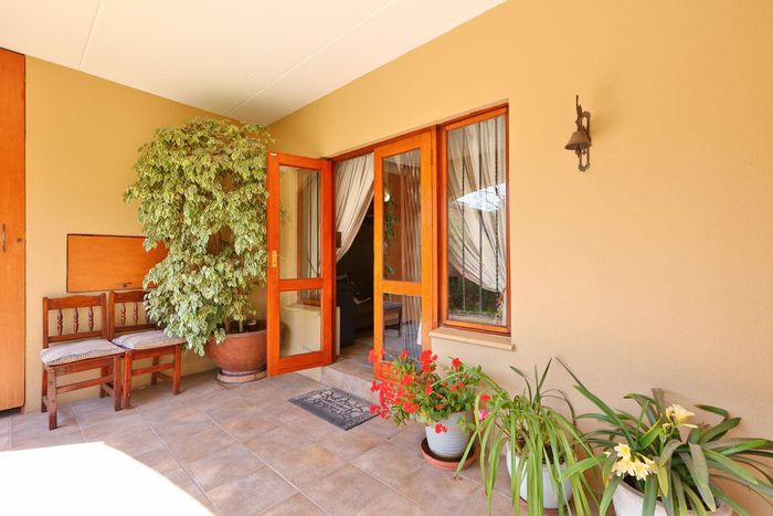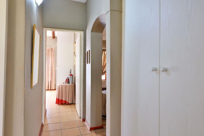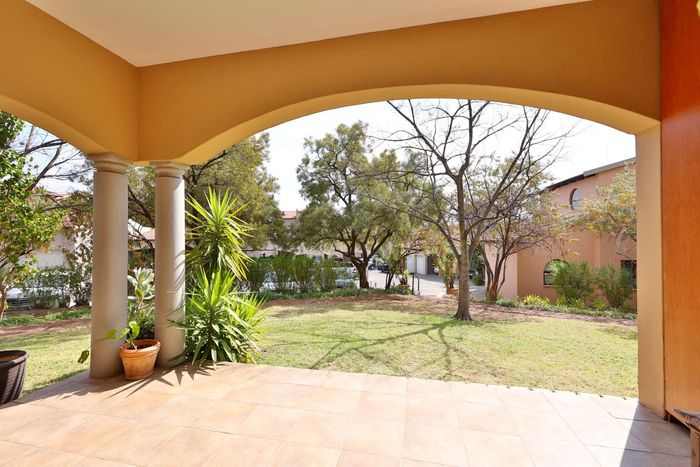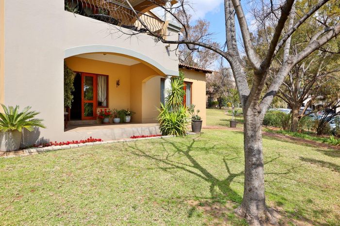Resort-style living in Belmont Estate with parks, pools and secure management; ground-floor corner apartment opening to a tiled garden patio with built-in braai, two beds, two baths, garage.