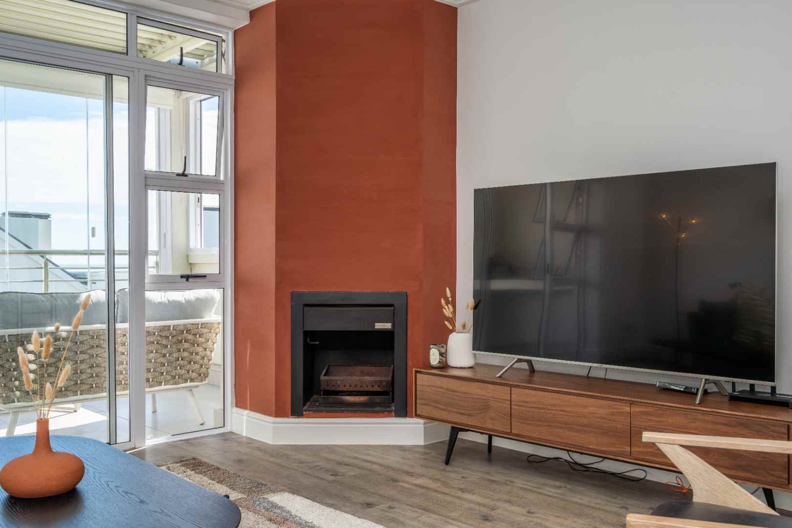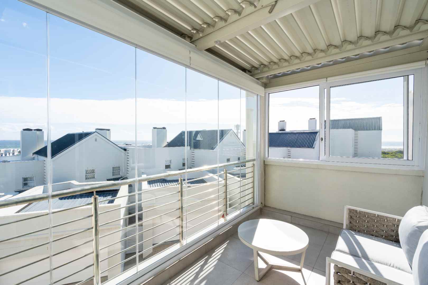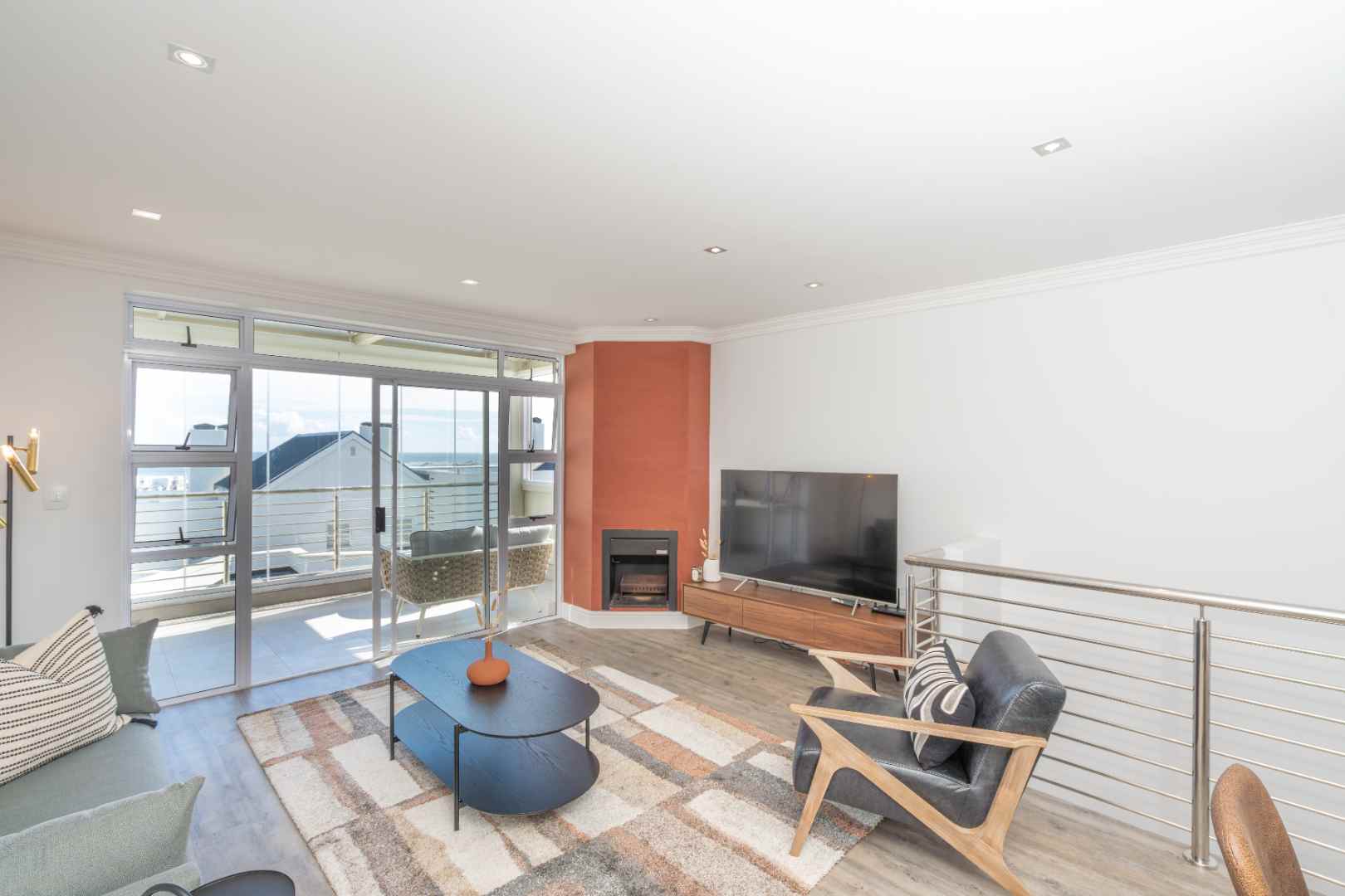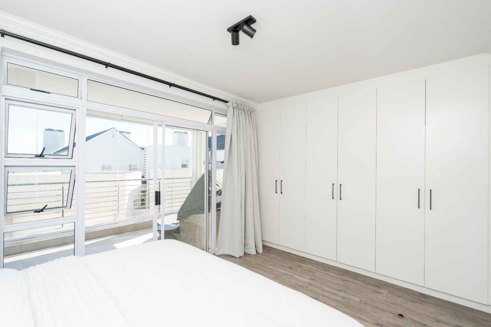 Slide open the doors to the enclosed second balcony, where comfortable outdoor seating and a gas braai invite you to relax and soak in the panoramic, uninterrupted views of the Table Mountain backdrop.