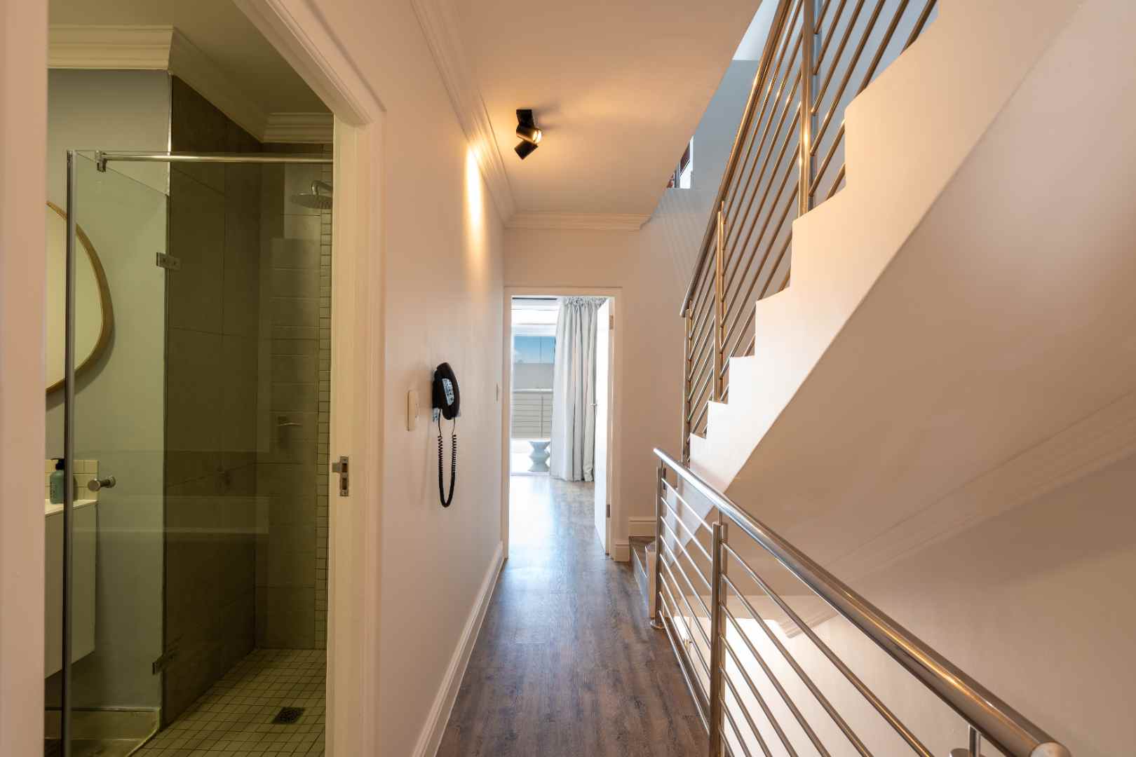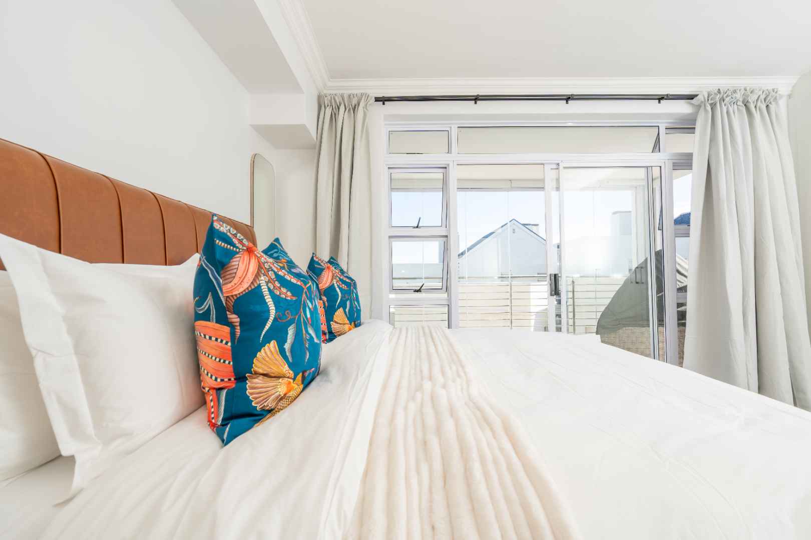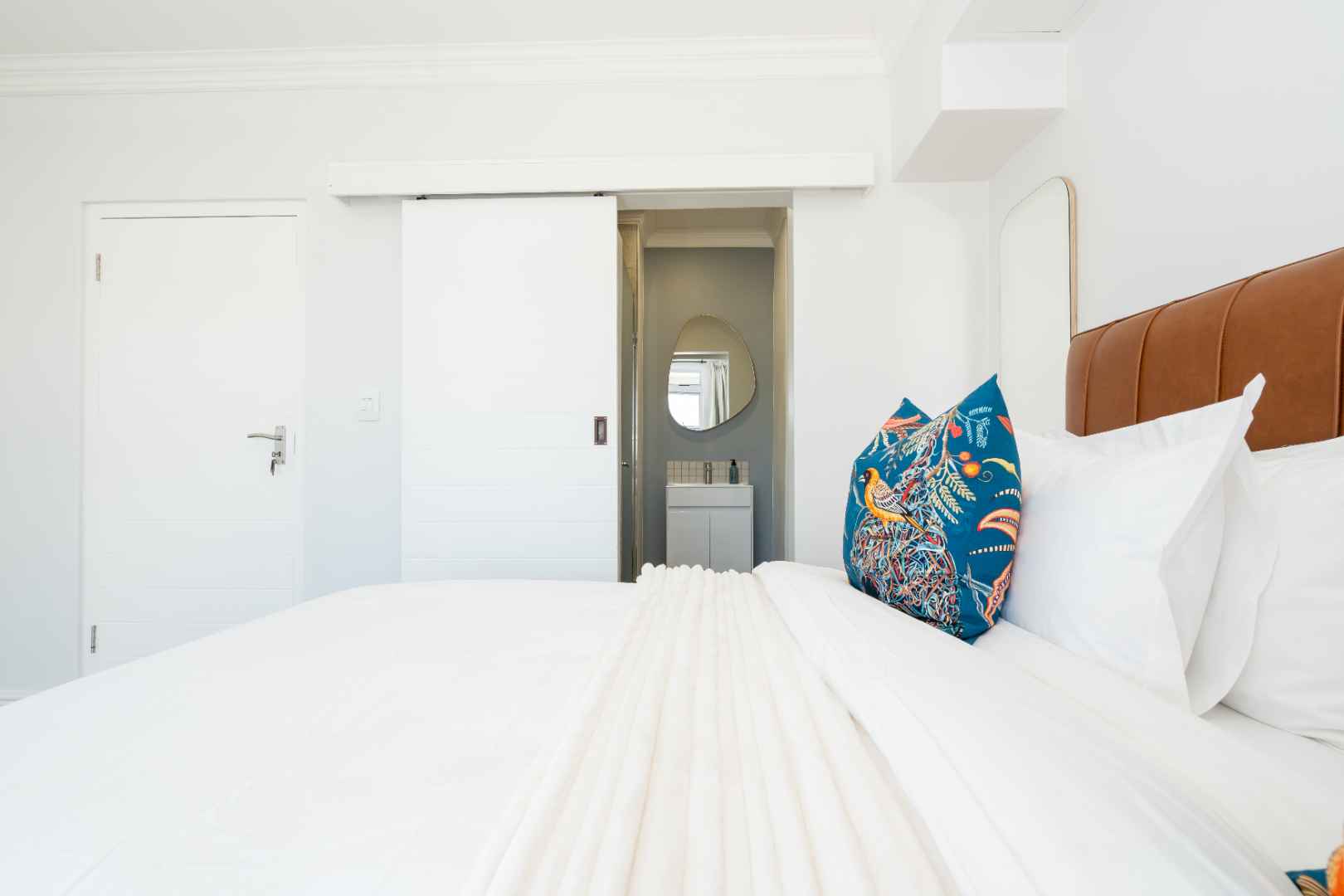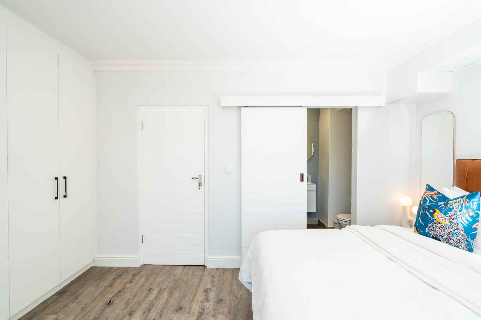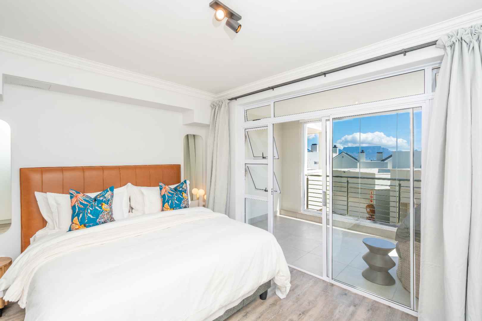 The second bedroom features a King bed, an en-suite bathroom with a shower, and a private balcony offering breathtaking views of Table Mountain — perfect for enjoying morning coffee or a sunset wine.