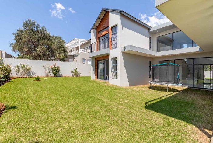 Entertainer's family retreat in sought-after Dainfern Ridge Estate, with closed entertainment patio and built-in braai overlooking garden and pool; includes 5 beds, 3.5 baths and double garage.