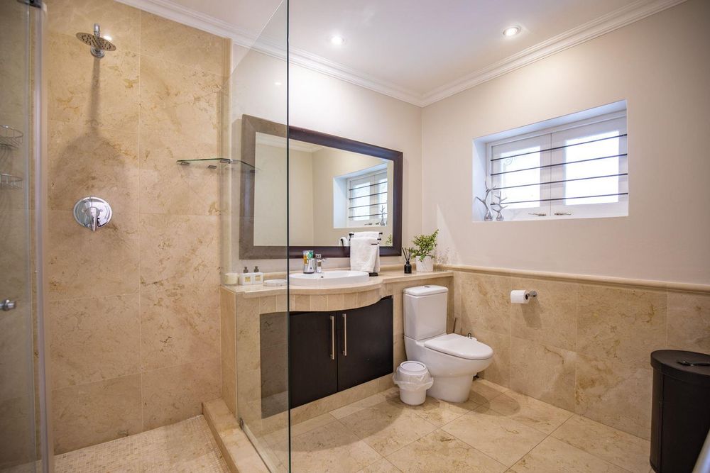 On the second floor, three more bedrooms await, including the master suite with a steam shower and outdoor shower. The opulent marble tiling in the bathrooms, double-glazed windows, and 30 solar panels add to the luxurious feel. Remarkably, the area does not experience load shedding, and the house is partially off-grid.