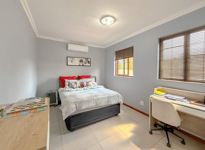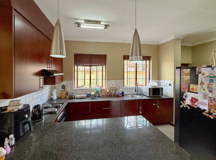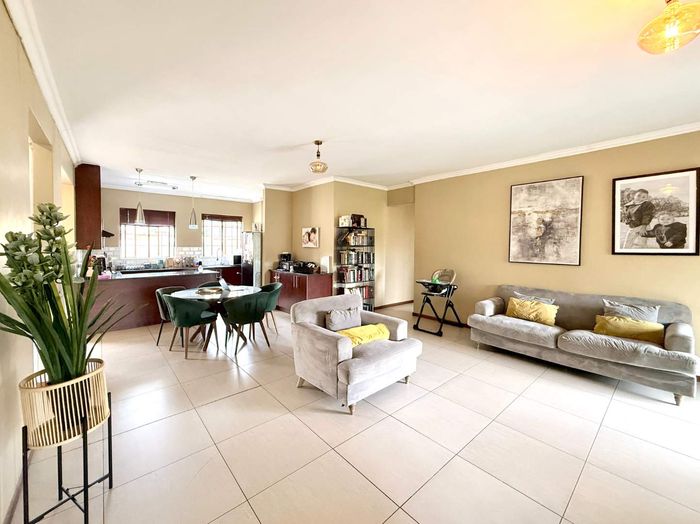 Private family living in a guarded estate on a quiet cul-de-sac, close to schools and shops. Open-plan flow to covered patio with built-in braai. 3 beds, 2 baths, double garage.