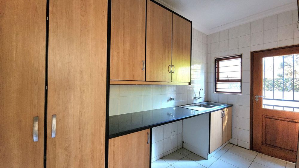 Downstairs, you’ll find a sun-filled lounge that flows onto a patio with a built-in braai, perfect for weekend entertaining. A spacious dining area and well-fitted kitchen with loads of cupboard space and a scullery make everyday living easy and comfortable.