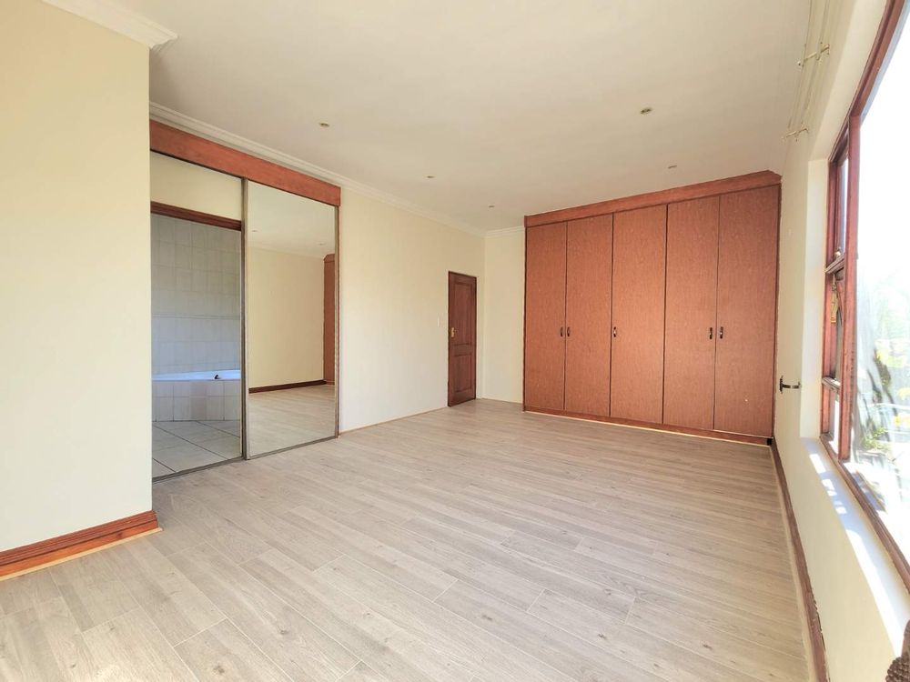 Downstairs, enjoy a spacious open-plan lounge and dining area leading to a sleek kitchen with plenty of cupboards and a scullery. The flow continues to a cosy patio with built-in braai, ideal for entertaining or spending quite mornings and evenings.