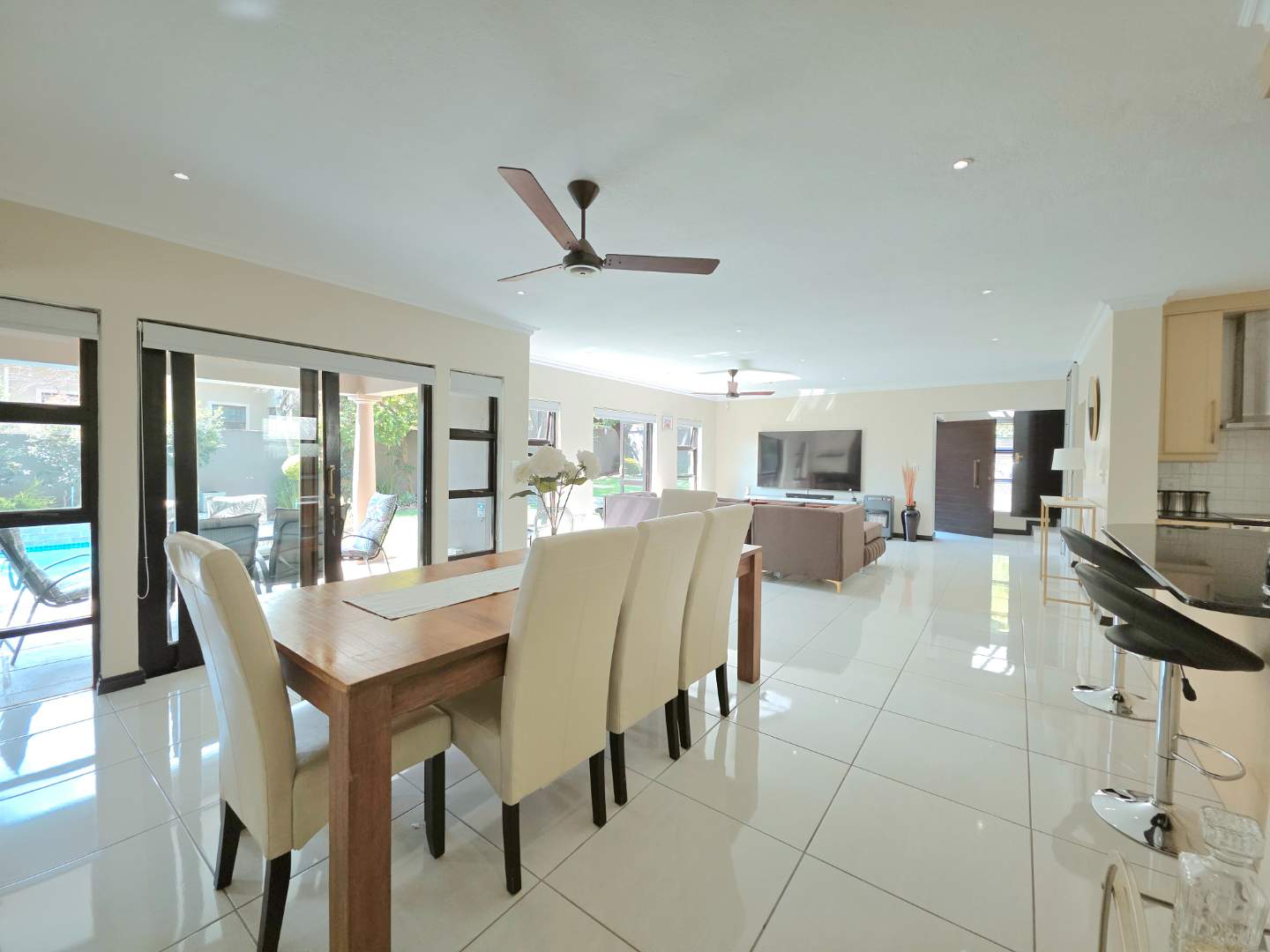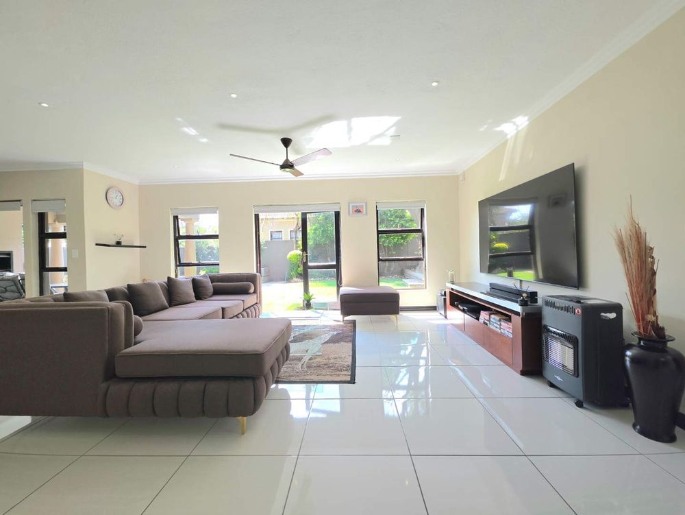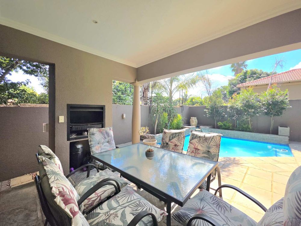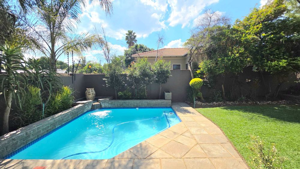 Step outside to your own private retreat. The living area flows effortlessly onto a covered patio featuring a built-in braai, perfect for weekend entertaining. This overlooks a sparkling blue pool set within a large, beautifully landscaped garden—a rare find for estate living and a paradise for kids and pets.