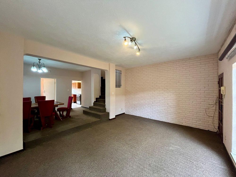 The semi-modern kitchen flows seamlessly into a spacious dining room and a welcoming living area, creating an ideal environment for both everyday living and entertaining. The home also features a private garden with ample space for outdoor gatherings.