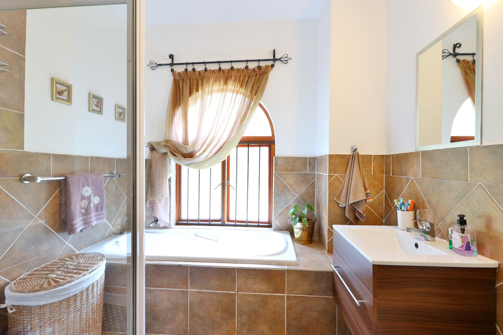 There are 2 spacious, tiled bedrooms each with a built-in wardrobe.