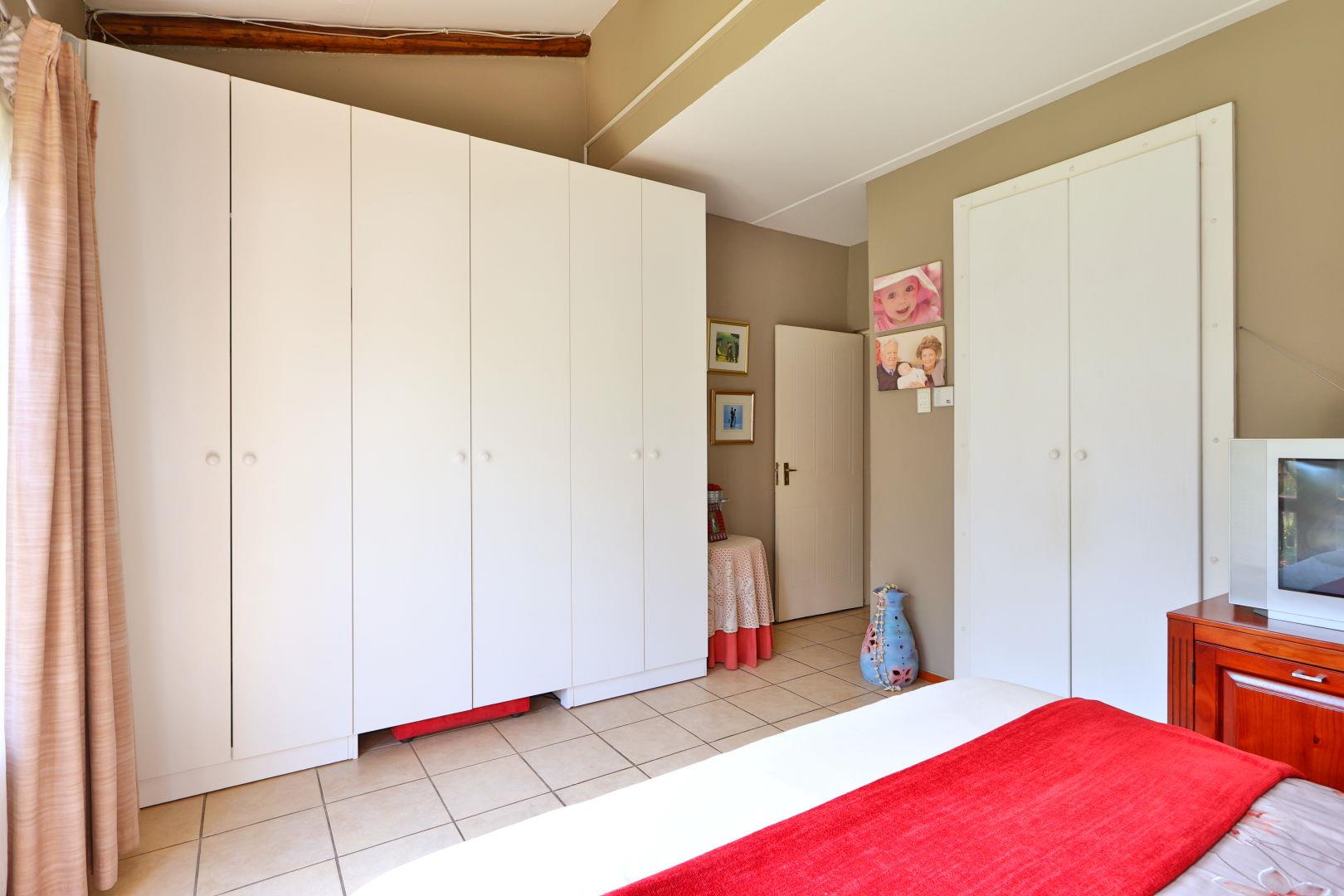 The large second bedroom has built-in cupboards.