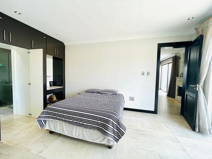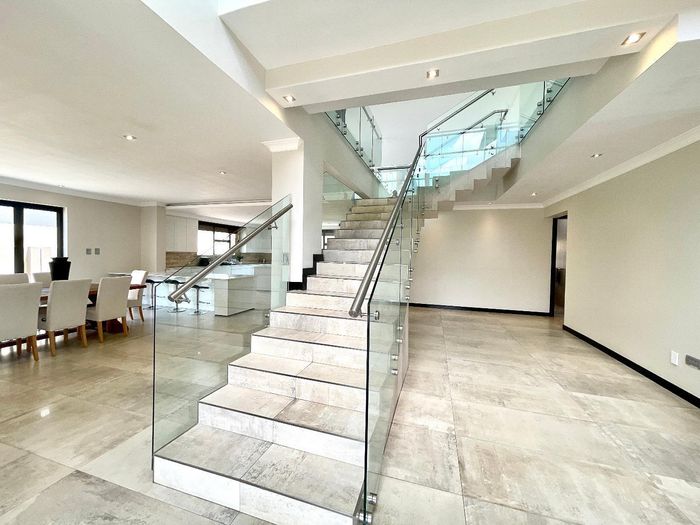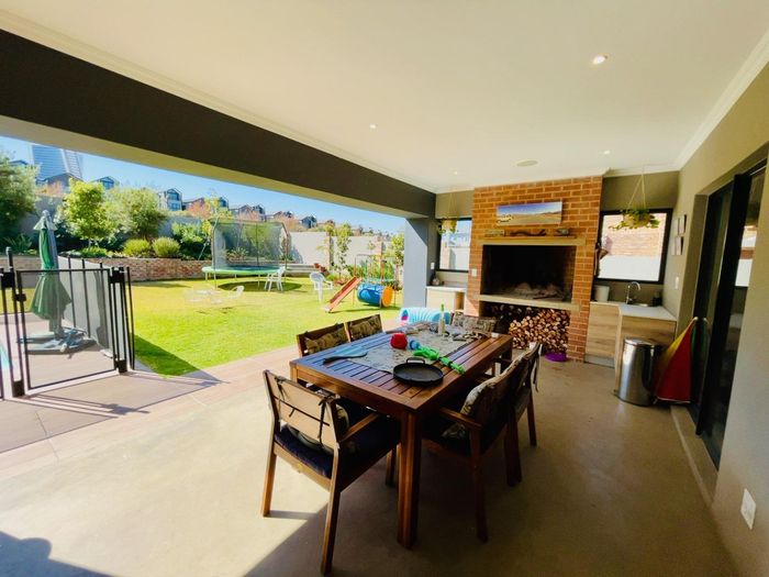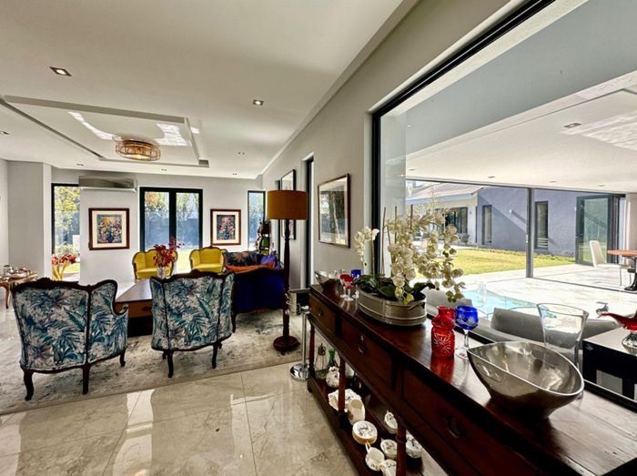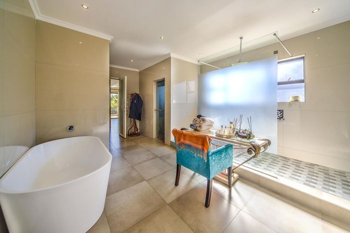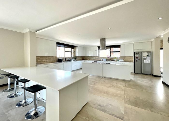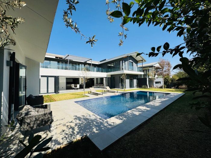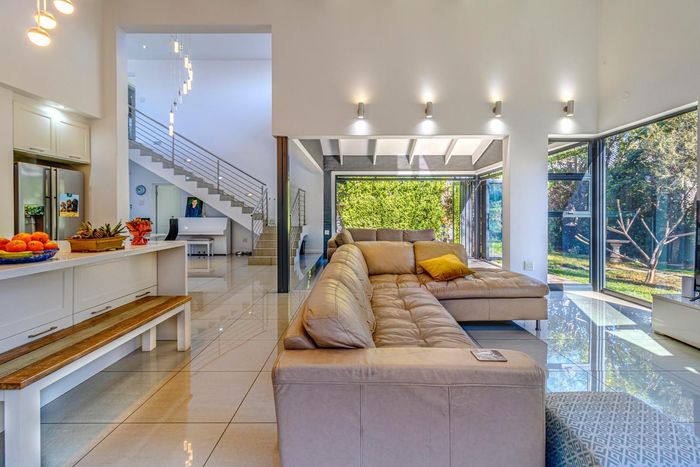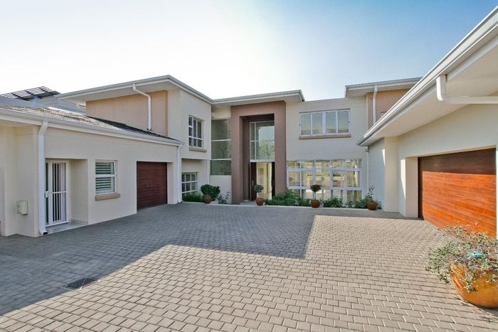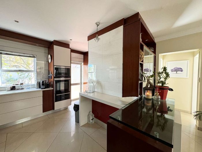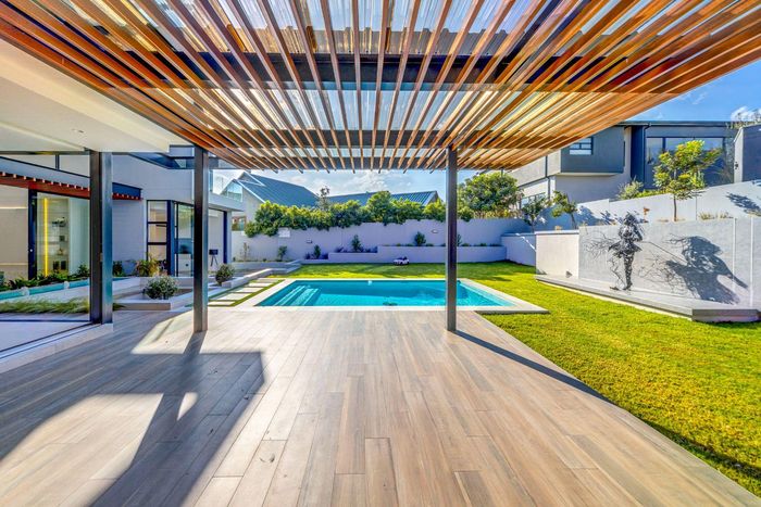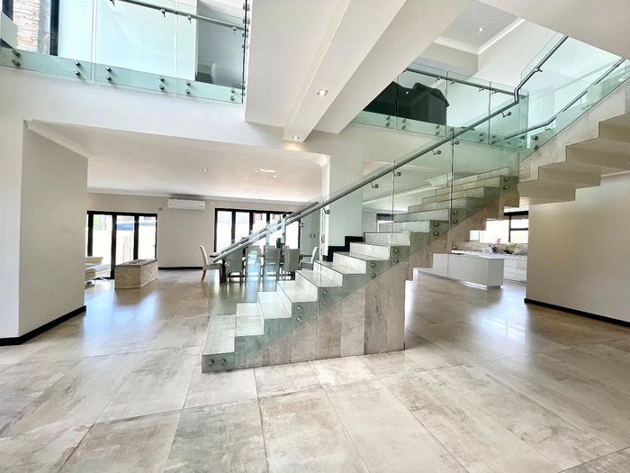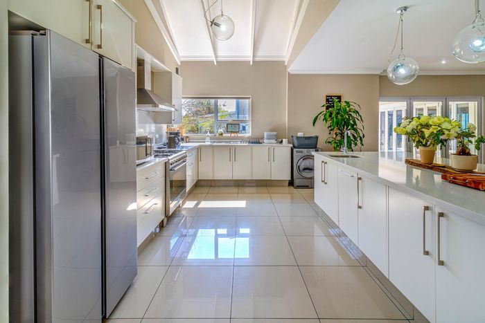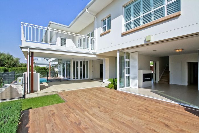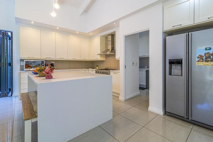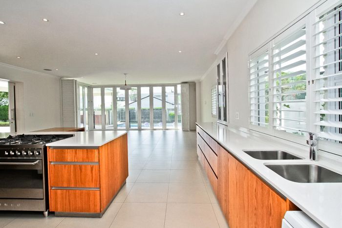 Entertainer's dream with pool and dual braai decks, set in a peaceful, leafy neighbourhood offering expansive garden living; open-plan kitchen, five bedrooms (all ensuites), 5.5 baths, double garage.