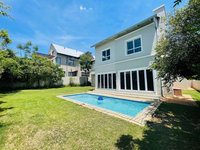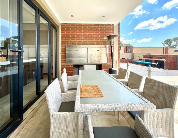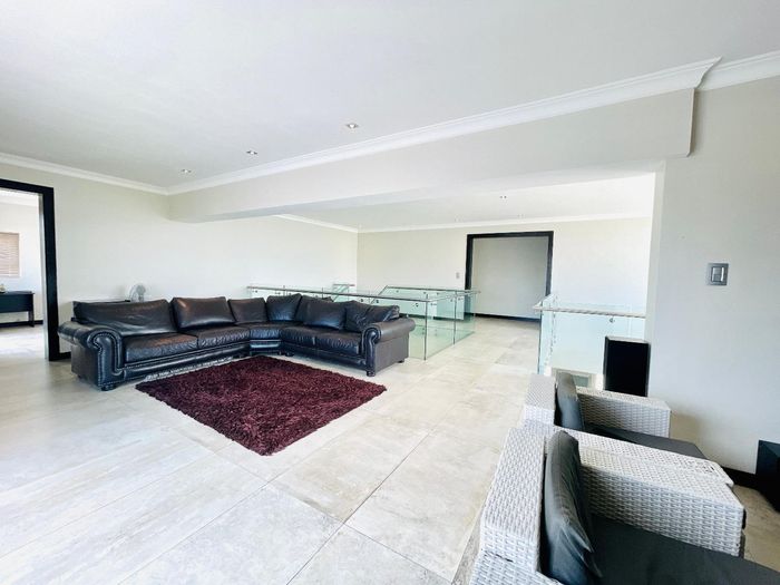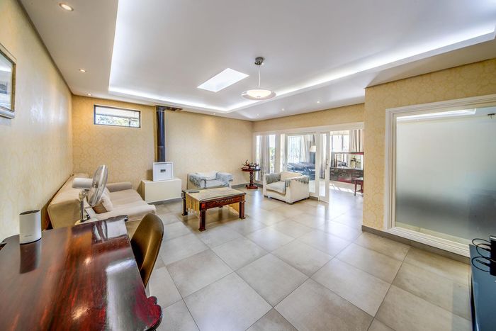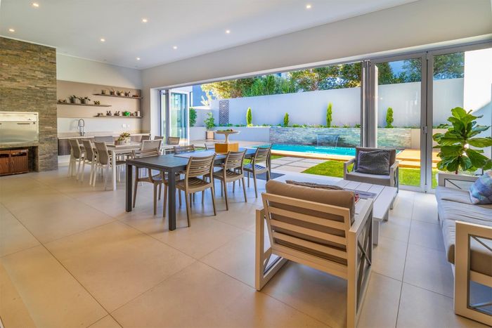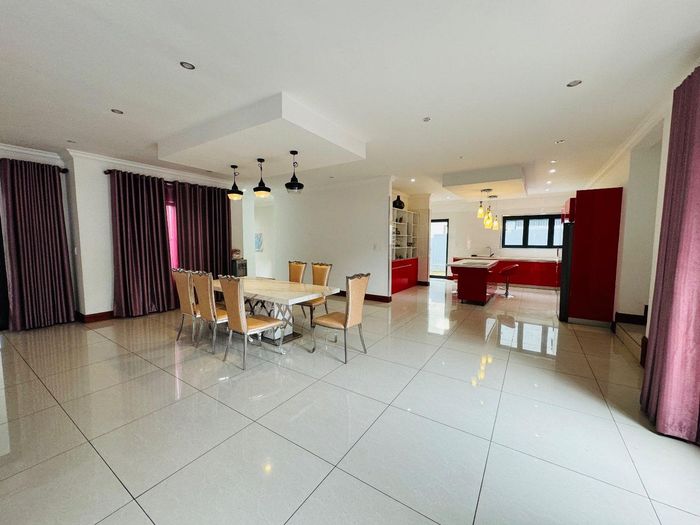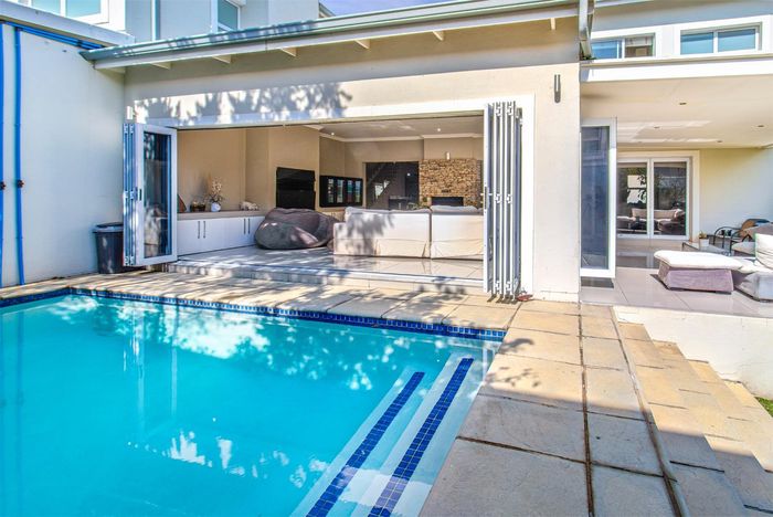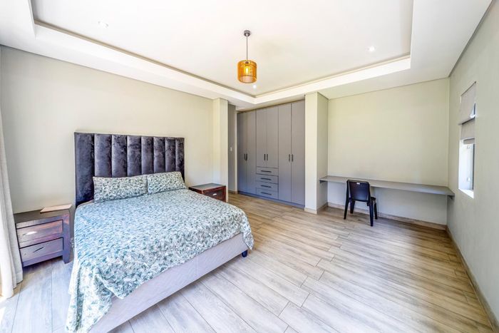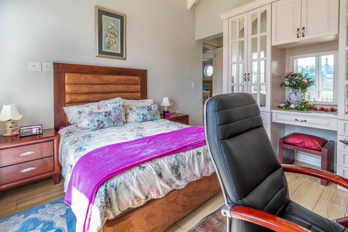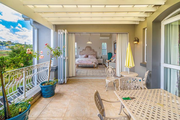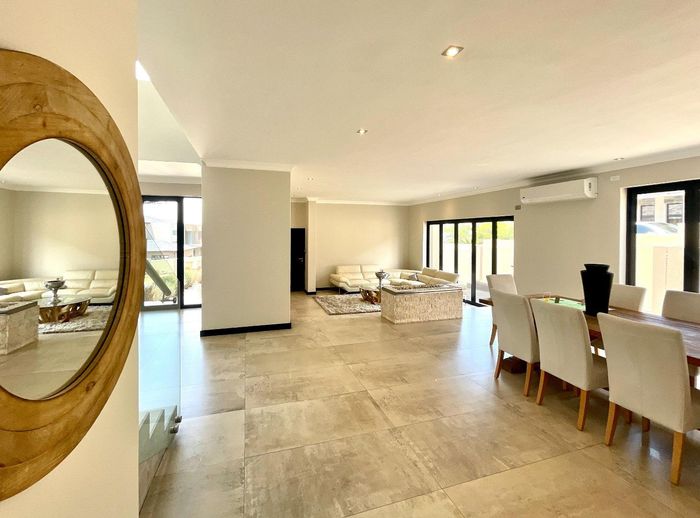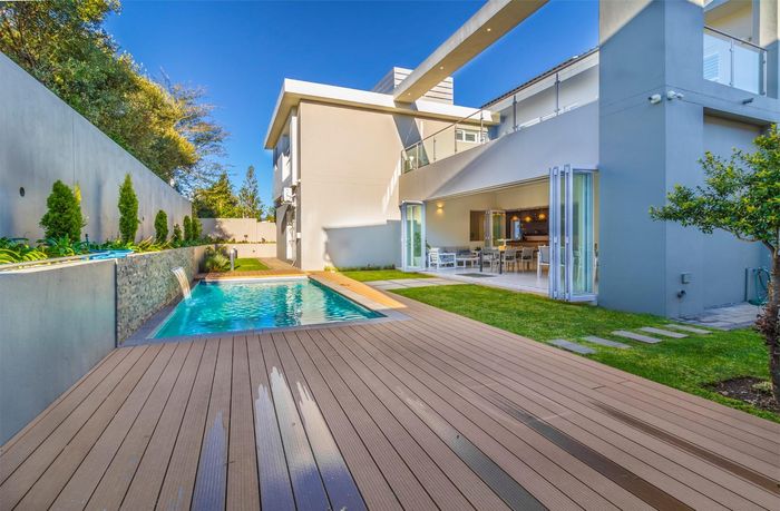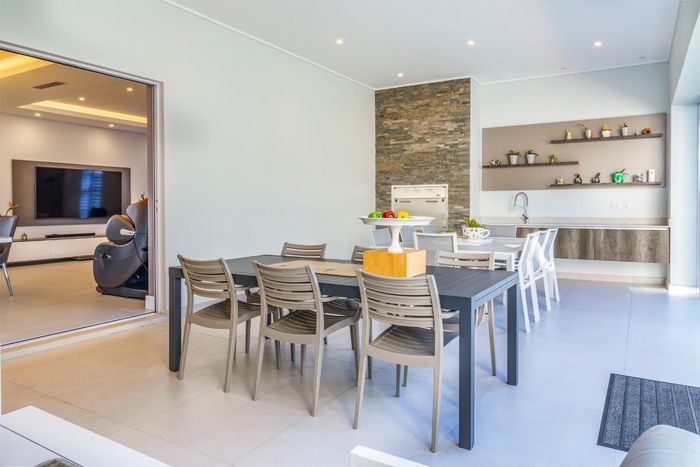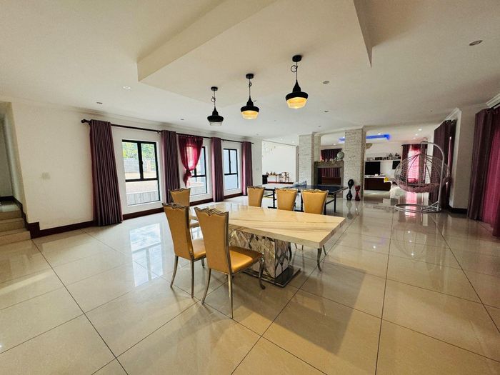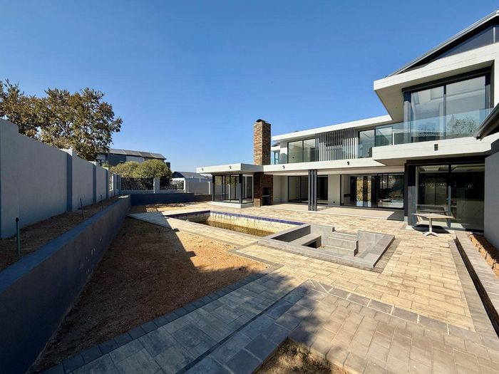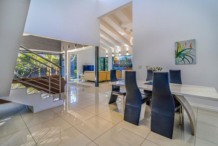 Entertainer's dream with pool and dual braai decks, set in a peaceful, leafy neighbourhood offering expansive garden living; open-plan kitchen, five bedrooms (all ensuites), 5.5 baths, double garage.