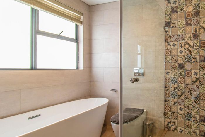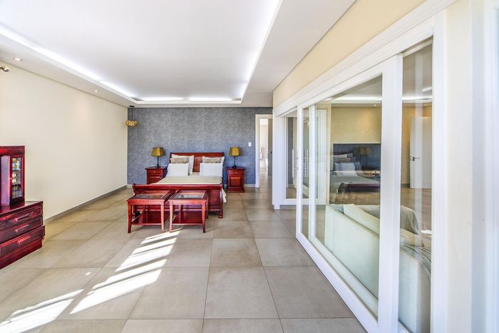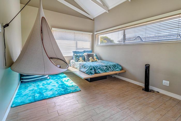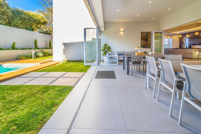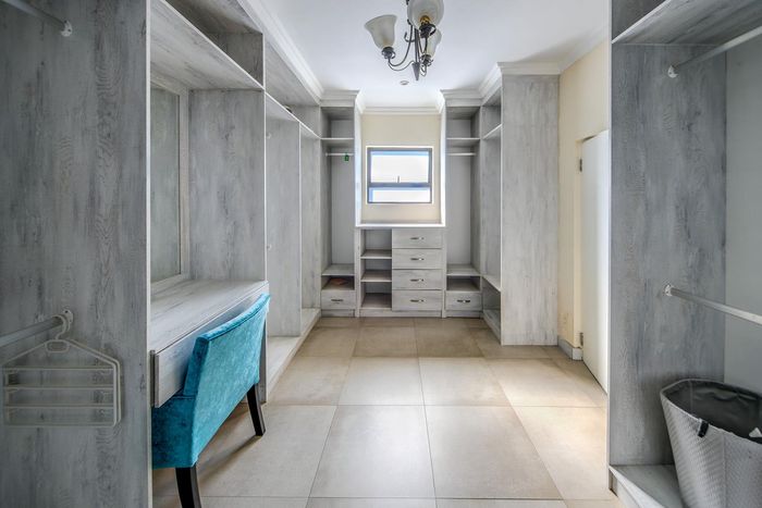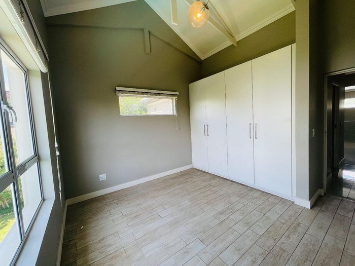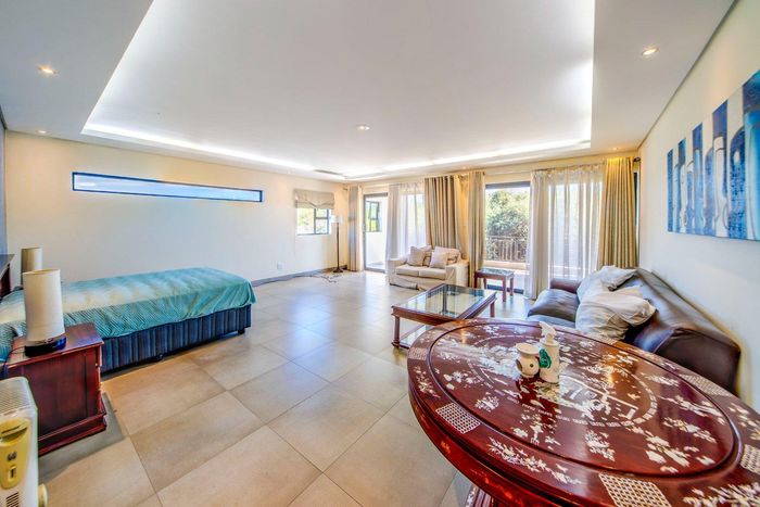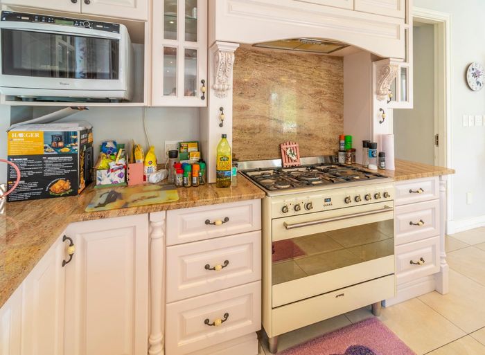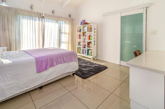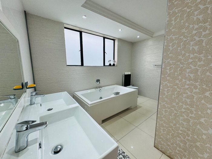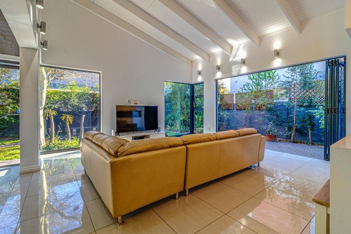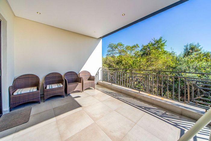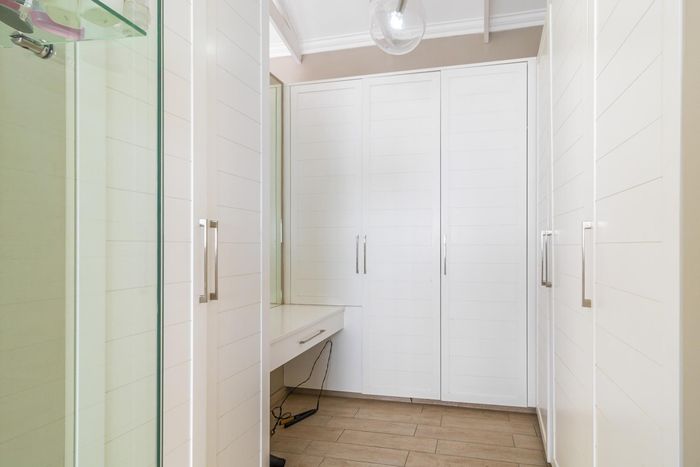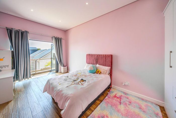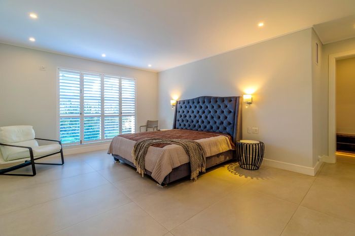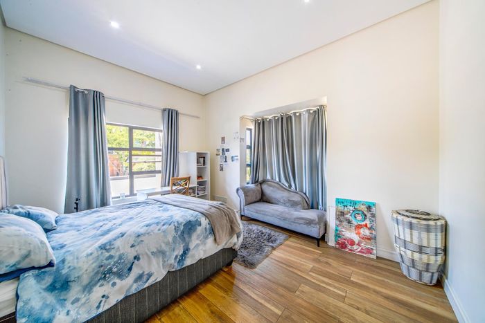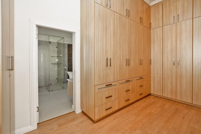 Entertainer's dream with pool and dual braai decks, set in a peaceful, leafy neighbourhood offering expansive garden living; open-plan kitchen, five bedrooms (all ensuites), 5.5 baths, double garage.