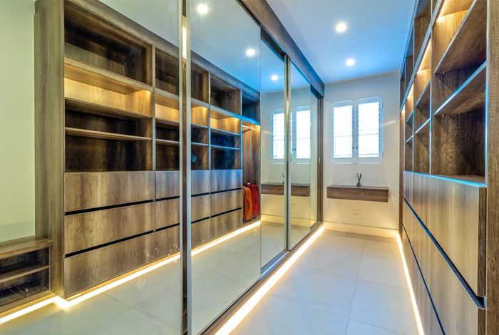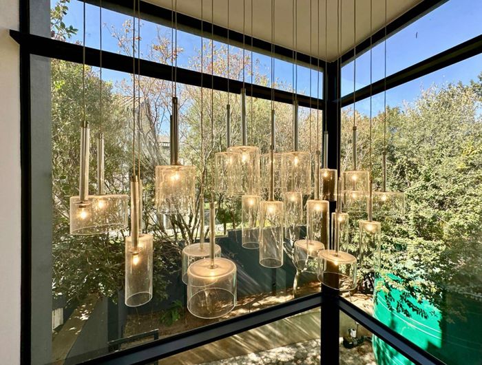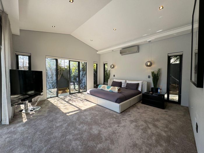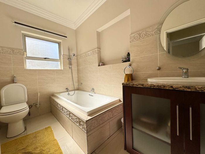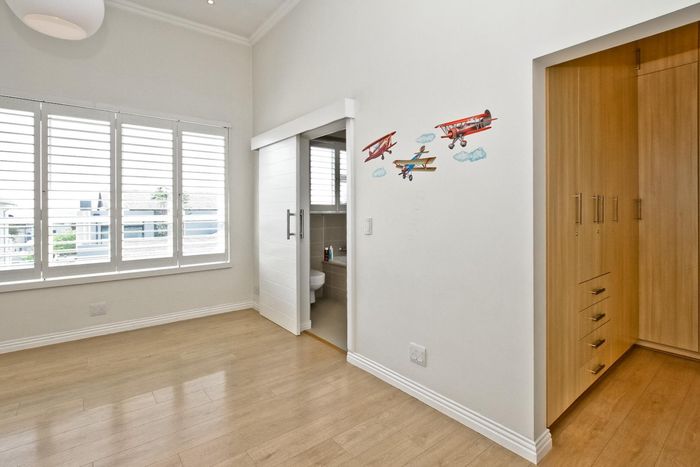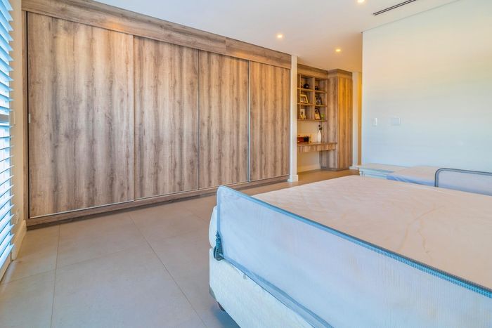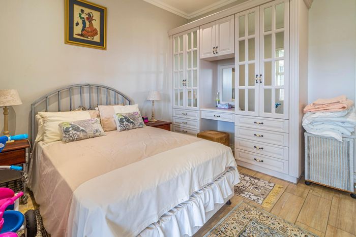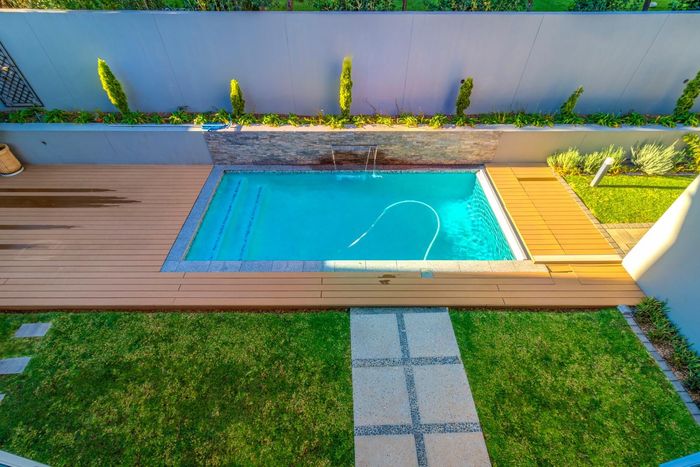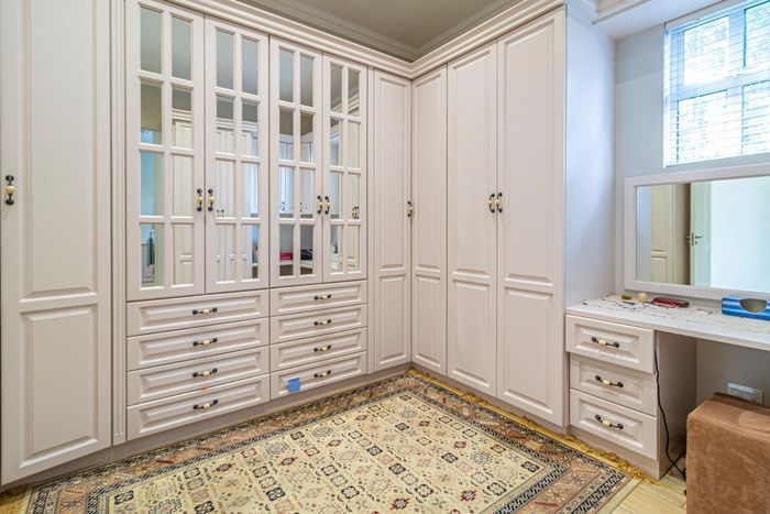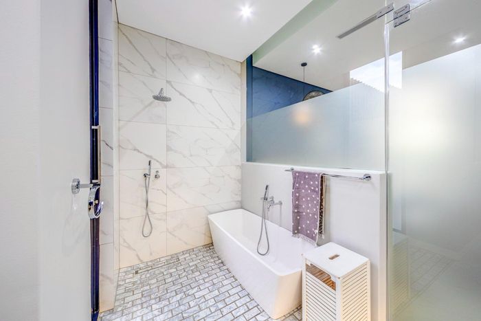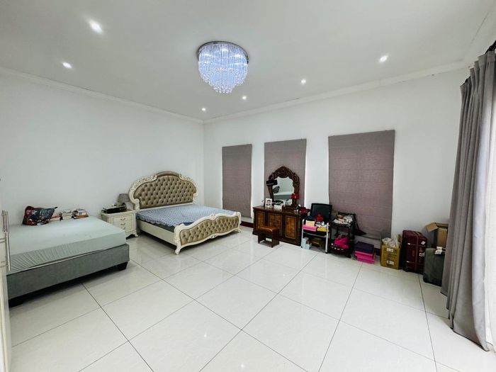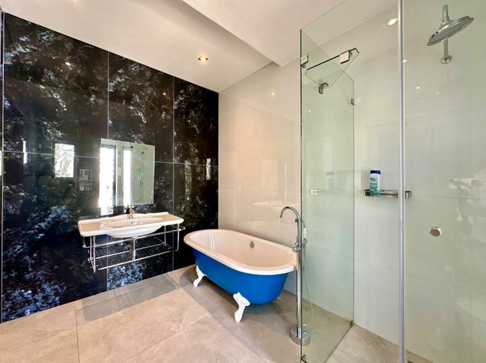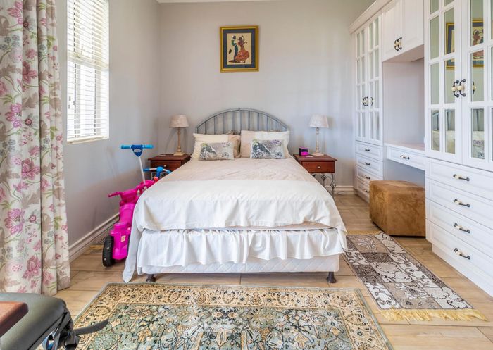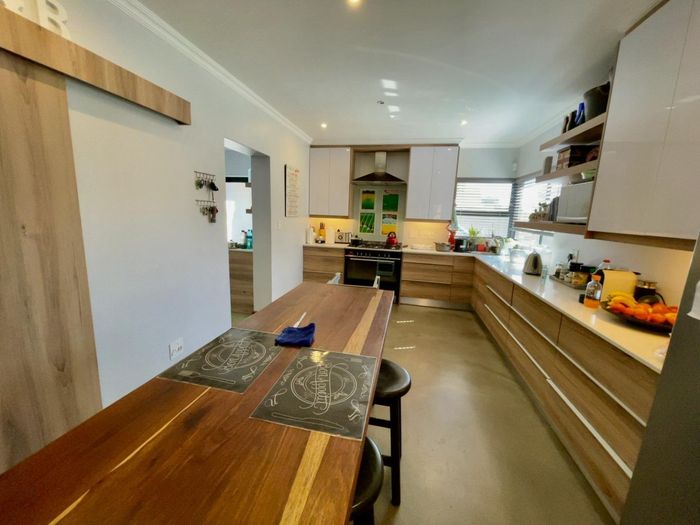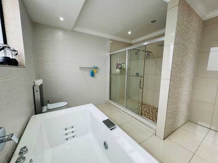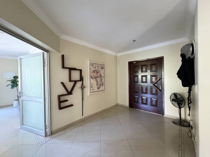 Entertainer's dream with pool and dual braai decks, set in a peaceful, leafy neighbourhood offering expansive garden living; open-plan kitchen, five bedrooms (all ensuites), 5.5 baths, double garage.