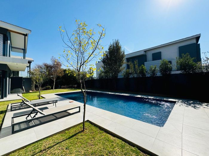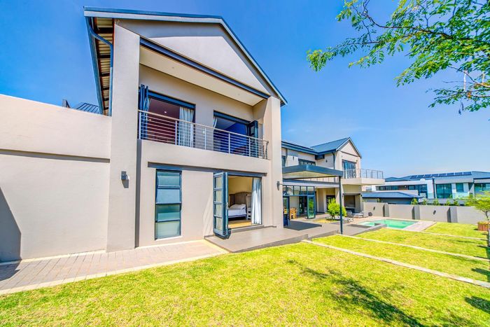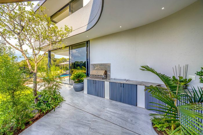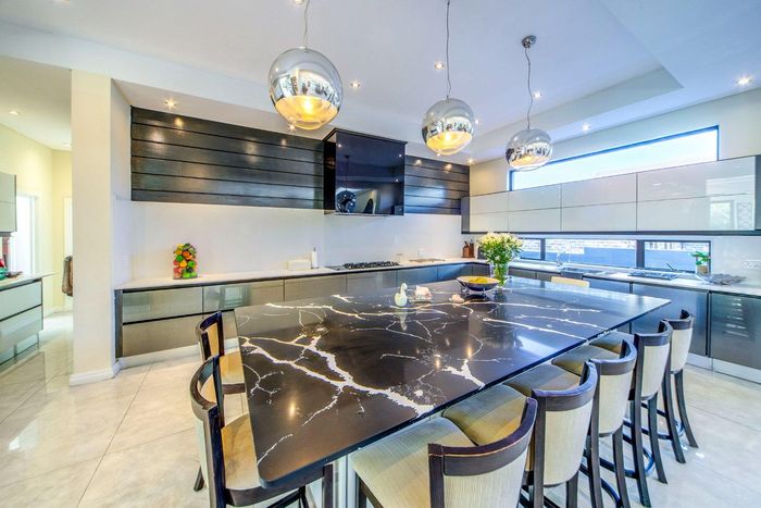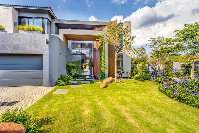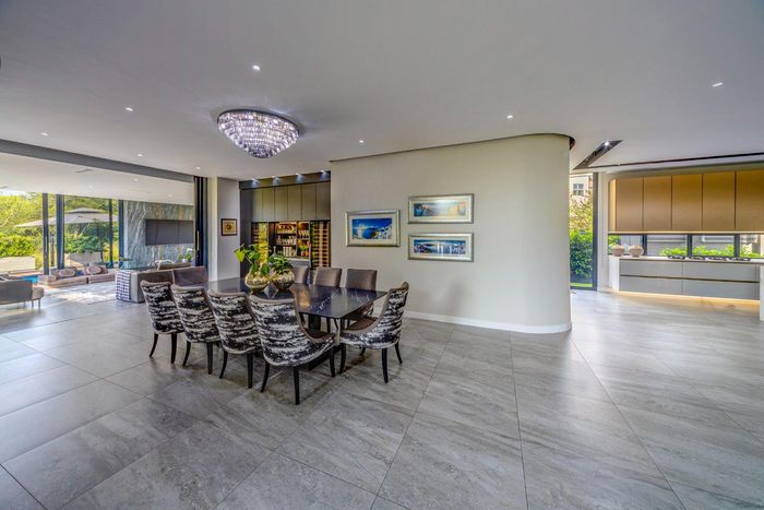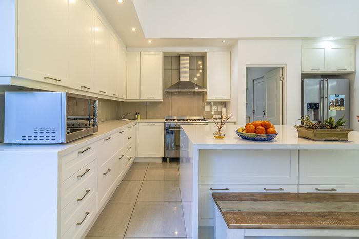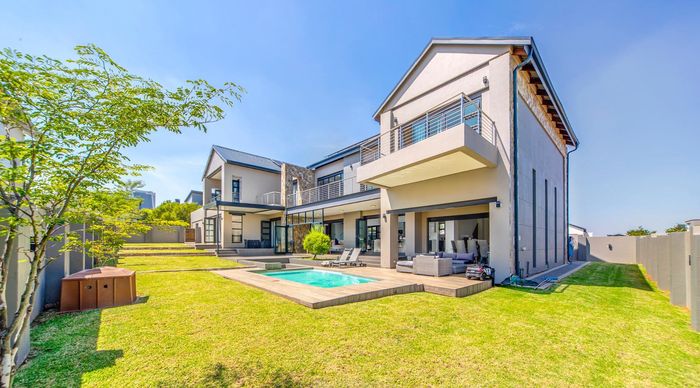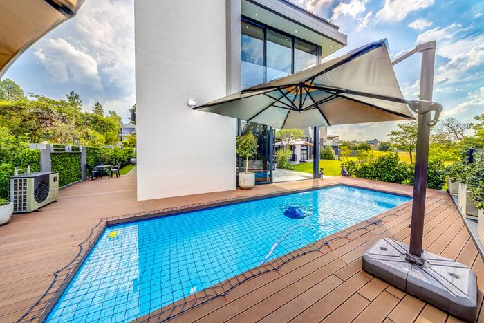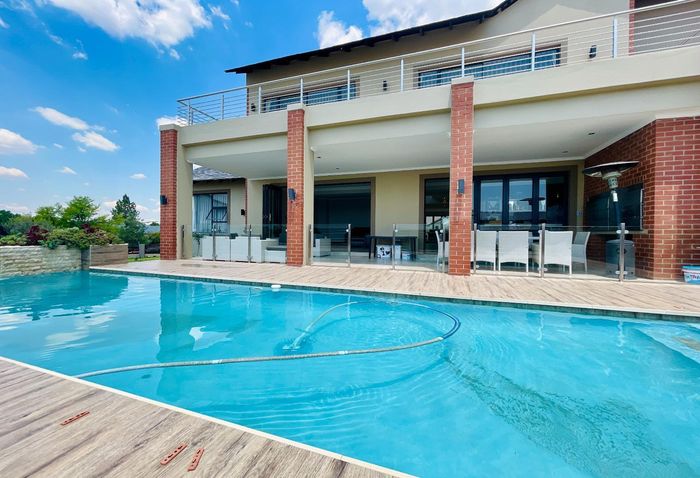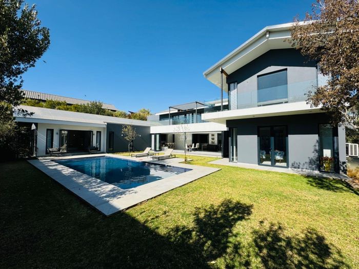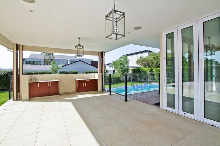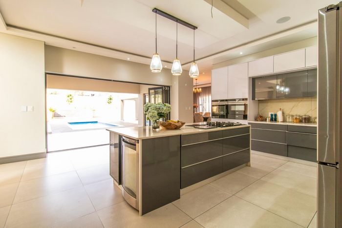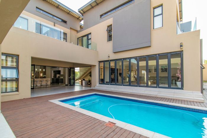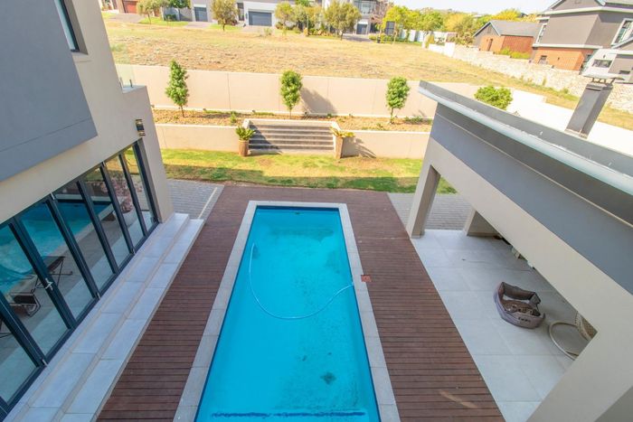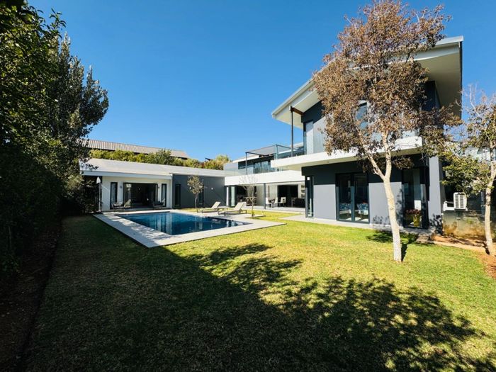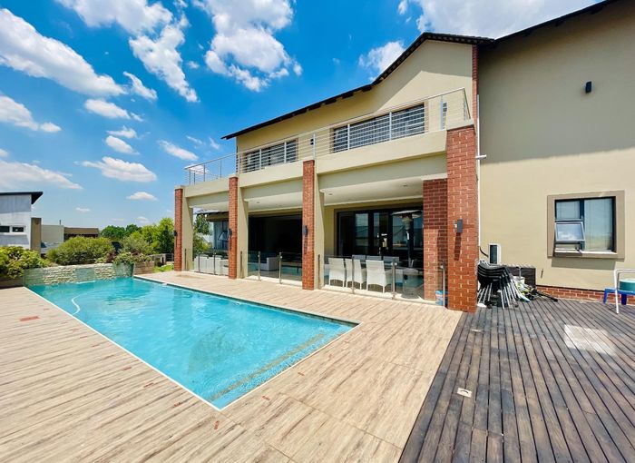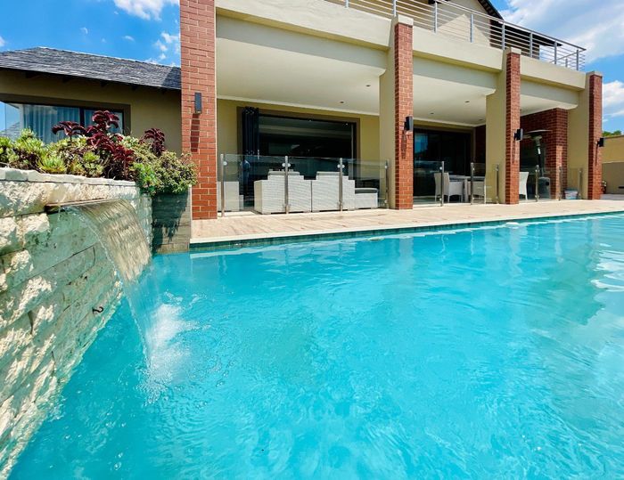 Entertainer's retreat in Waterfall Country Estate Gate 6 with poolside garden and versatile living zones — well-appointed kitchen, five bedrooms, 5.5 bathrooms and four garages.