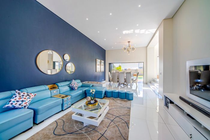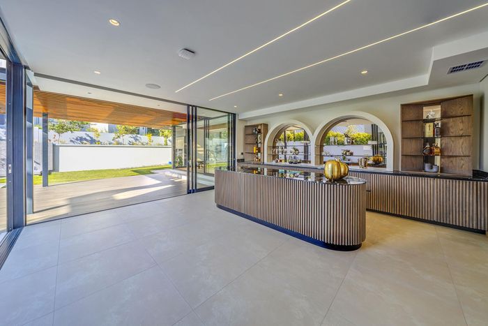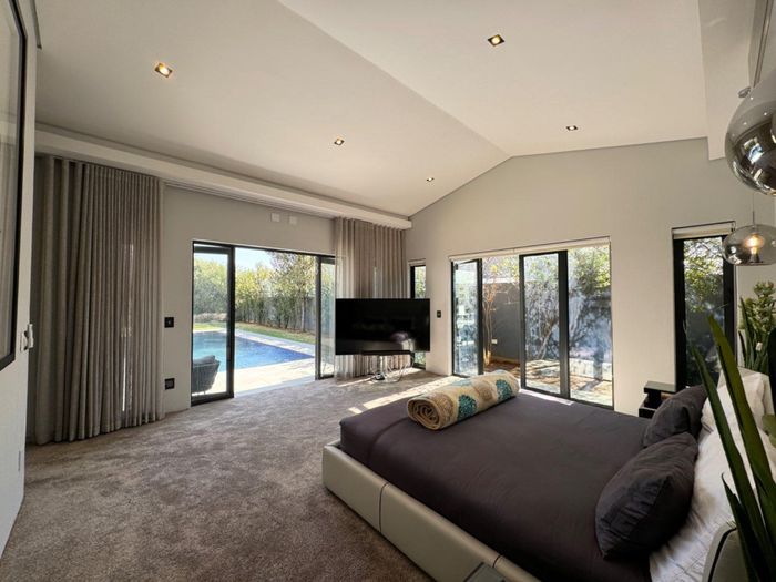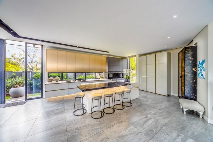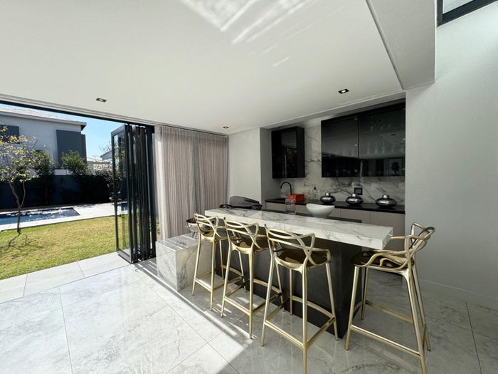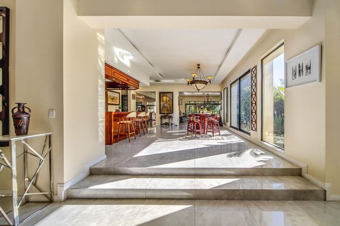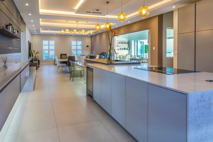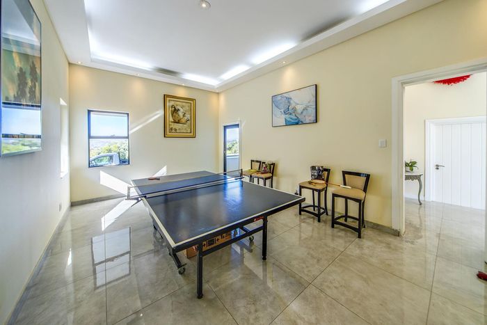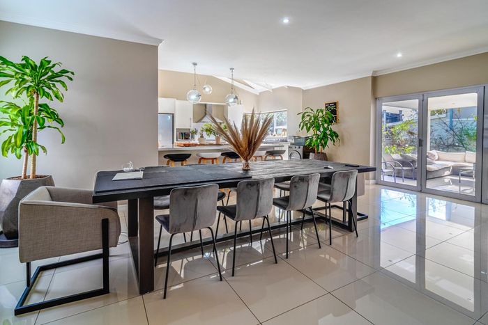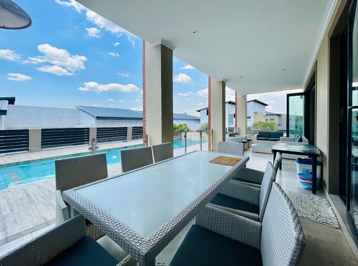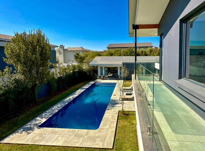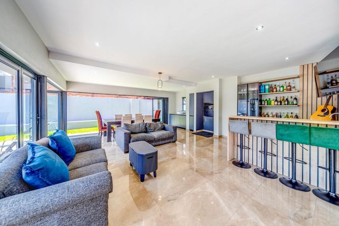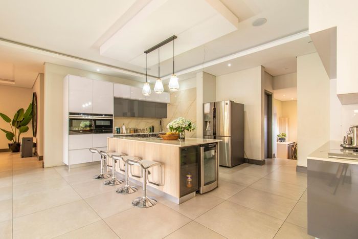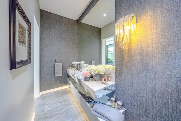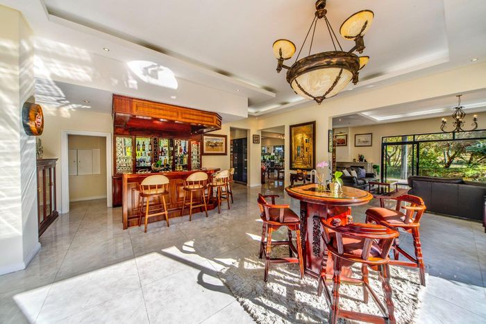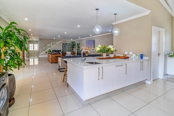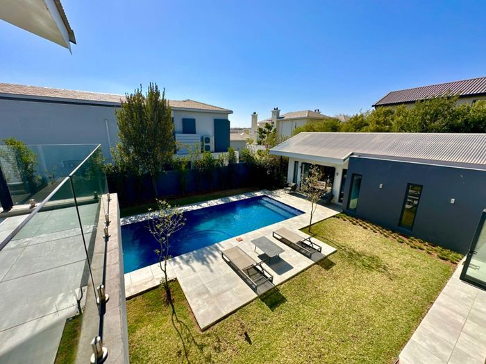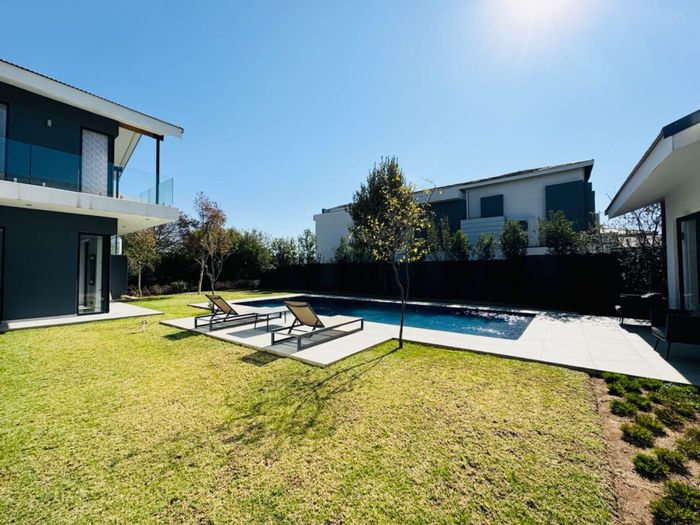 Entertainer's retreat in Waterfall Country Estate Gate 6 with poolside garden and versatile living zones — well-appointed kitchen, five bedrooms, 5.5 bathrooms and four garages.
