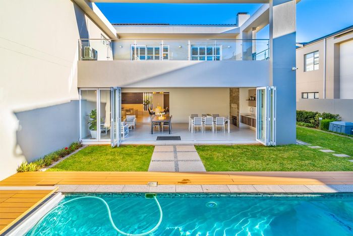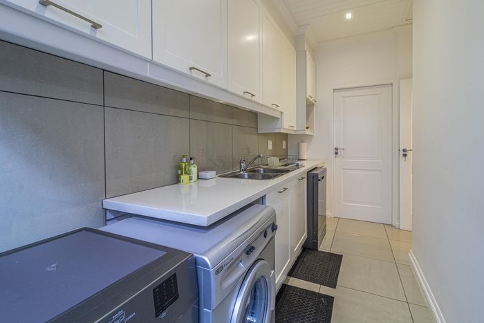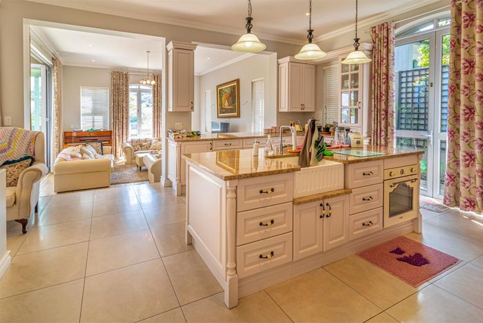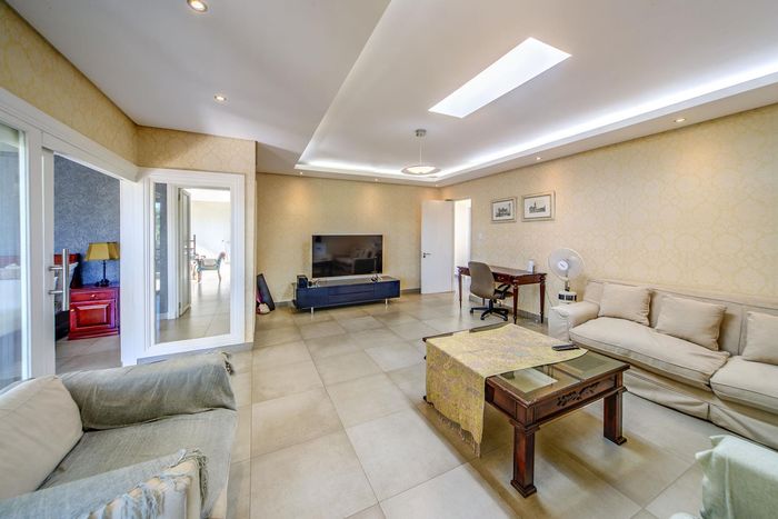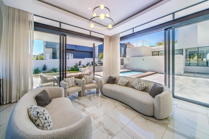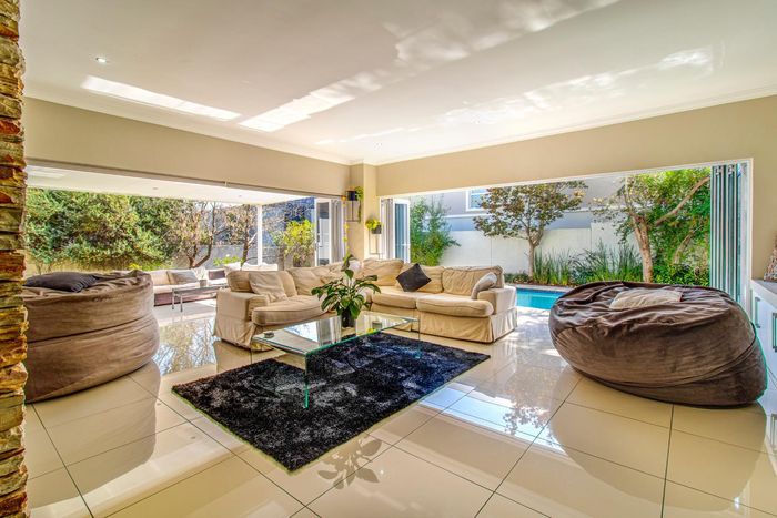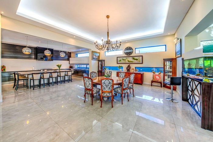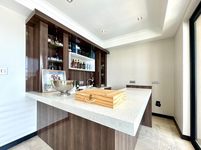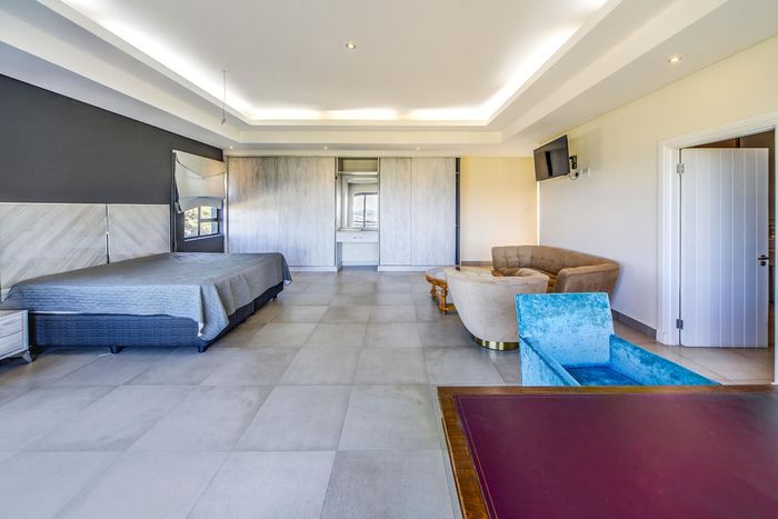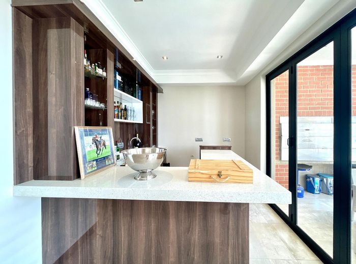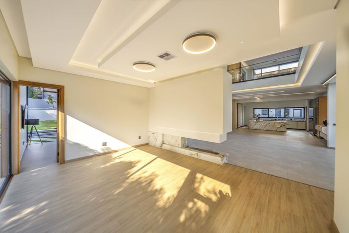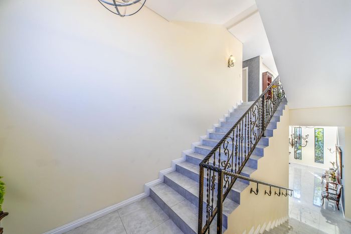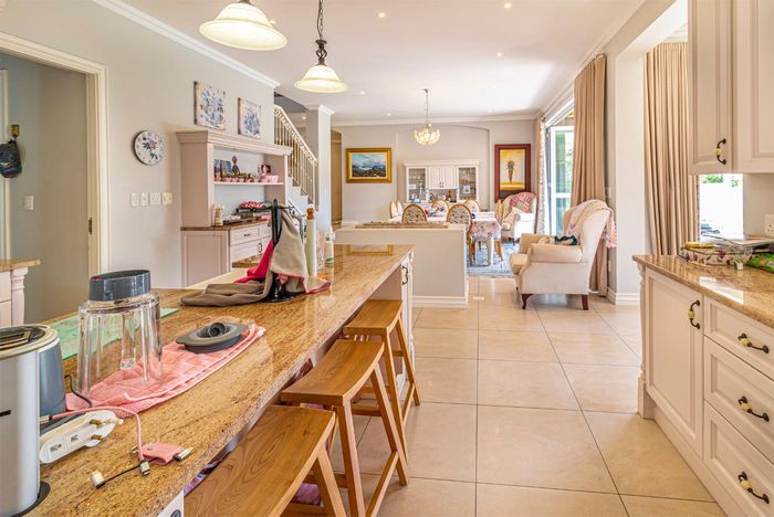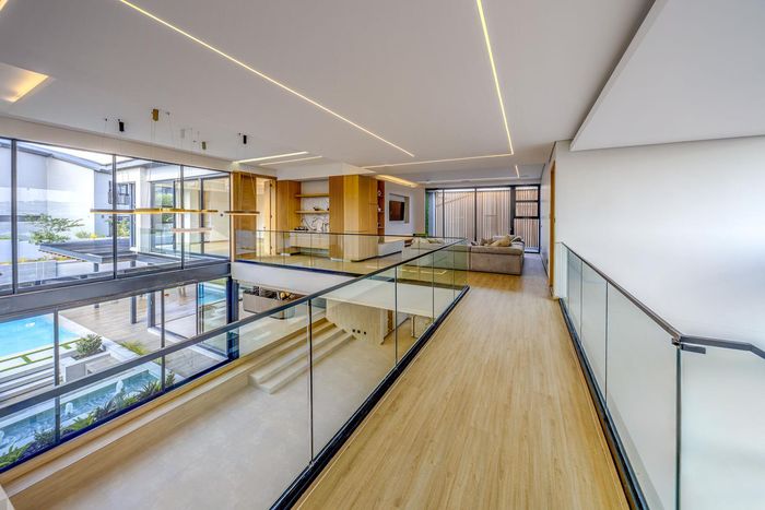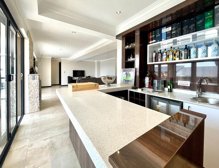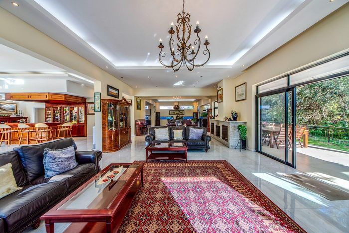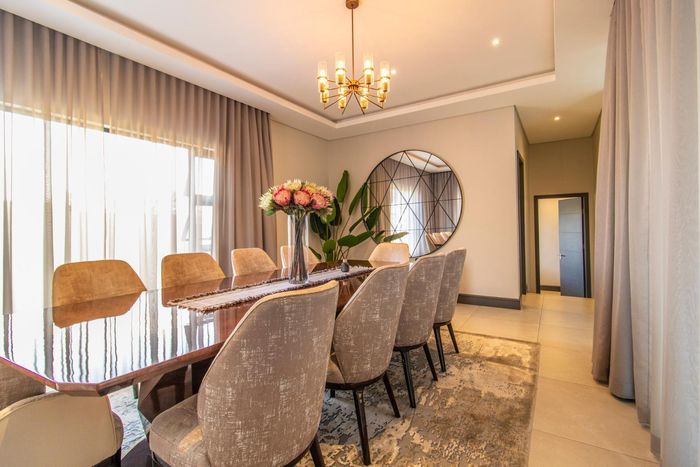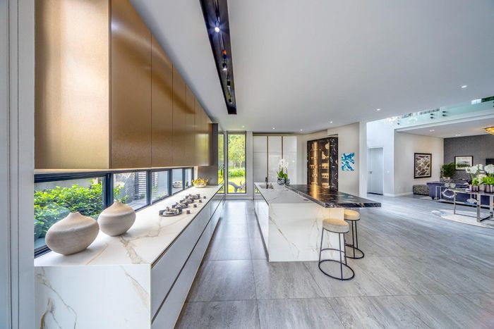 Entertainer's retreat in Waterfall Country Estate Gate 6 with poolside garden and versatile living zones — well-appointed kitchen, five bedrooms, 5.5 bathrooms and four garages.