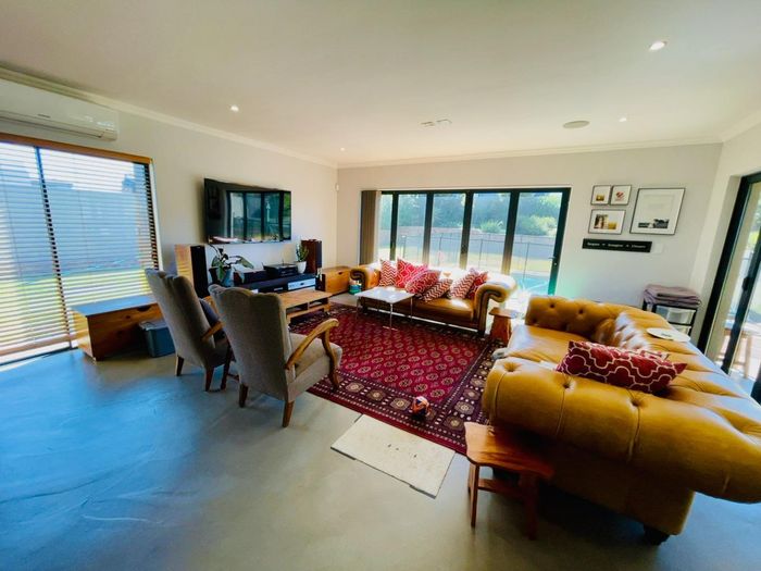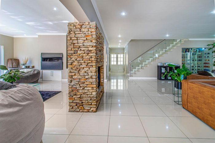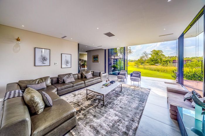 5-bedroom, all-en-suite home in Waterfall Country Estate with river views, open-plan living, and outdoor entertainment area.