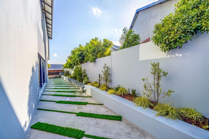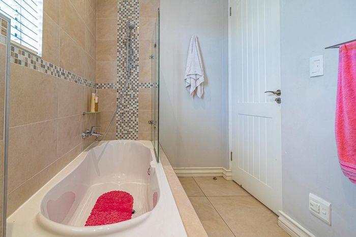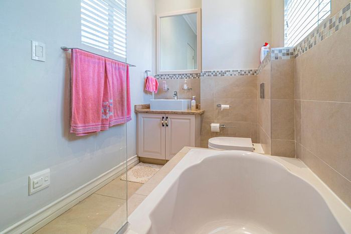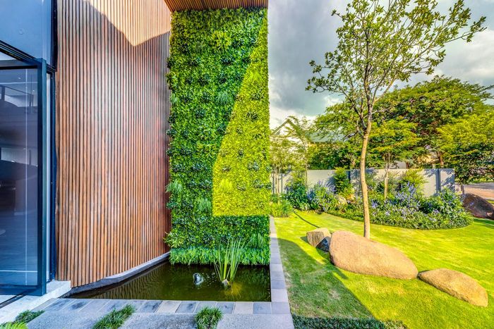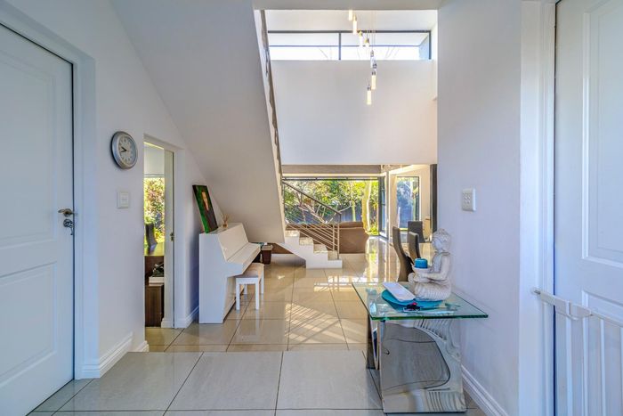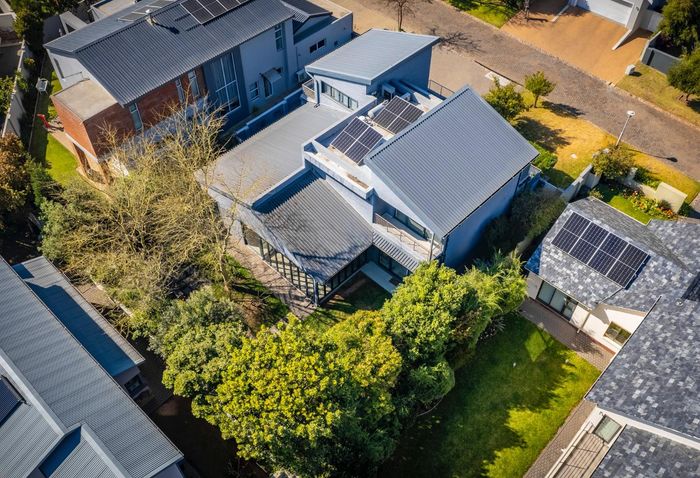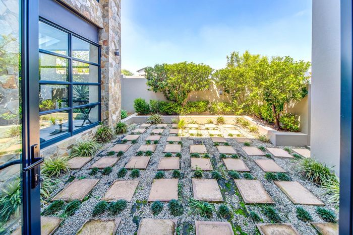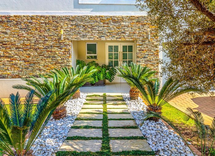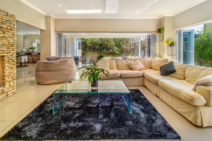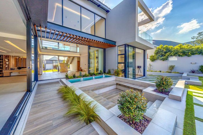 North-facing family home in Waterfall Country Estate with spacious courtyard, five bedrooms, and generous garden features.