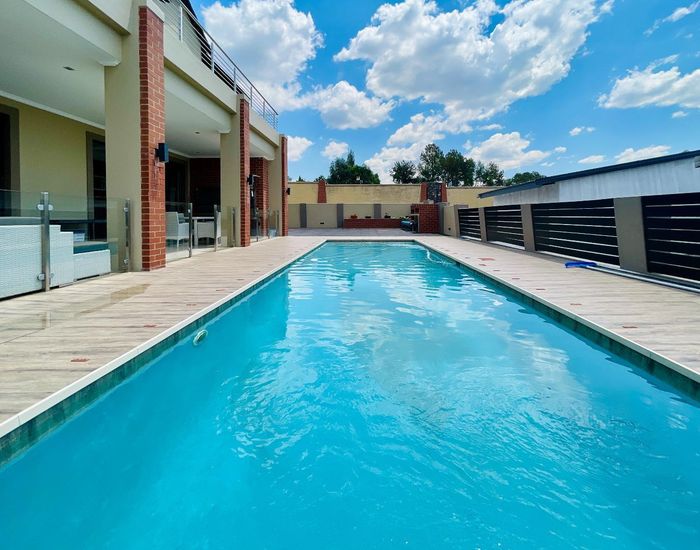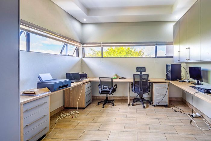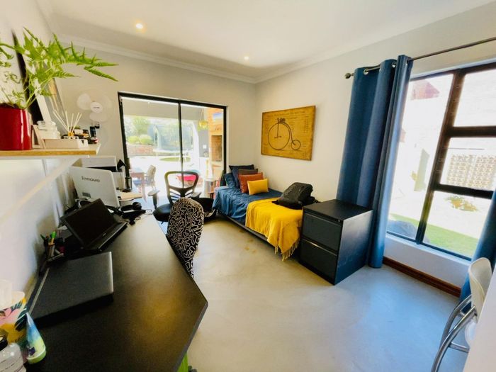 Stylish Kyalami Estate home with open-plan living, pool, garden, study, and guest room. Perfect for families and entertaining.