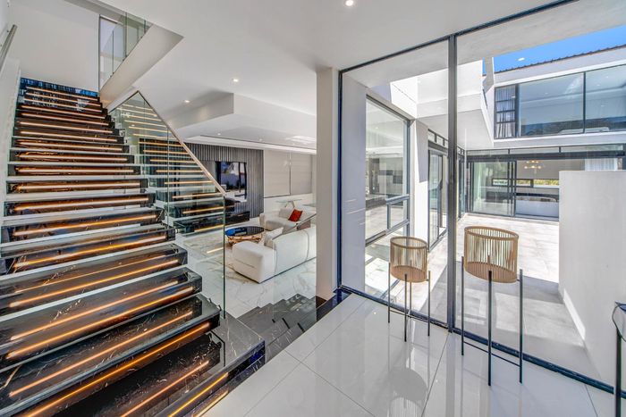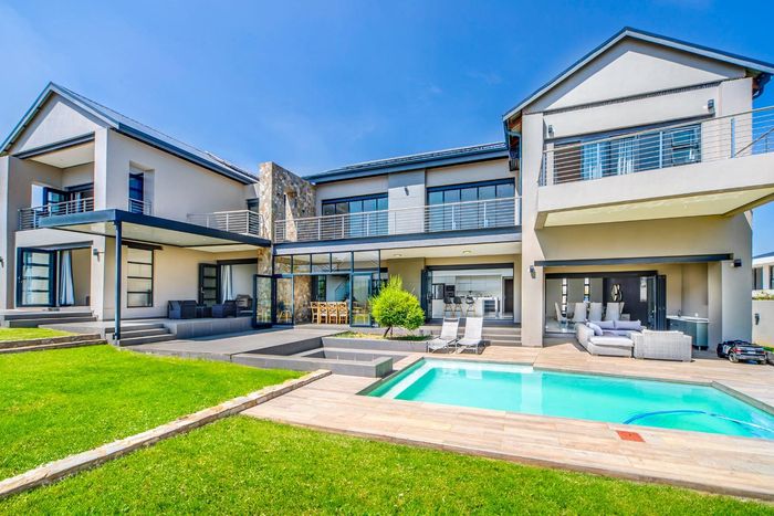 Resort-style entertainer in Waterfall Country Estate with private cinema, Blue Line Miele kitchen, pool with electric cover and gas braai; five bedrooms, 5.5 bathrooms, four garages.