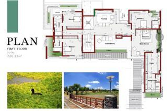 5 bedrooms, 5 bathrooms, 3 garages, 2 open parking spaces, 760 m² floor size on a 1101 m² land.