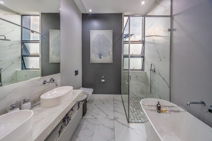 Prestigious Waterfall Country Estate lifestyle with a chef’s kitchen, cinema room, pool and private balconies — staff quarters and double garages; investment-ready with tenants in place until 2027.