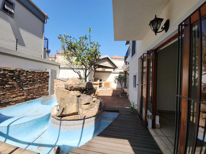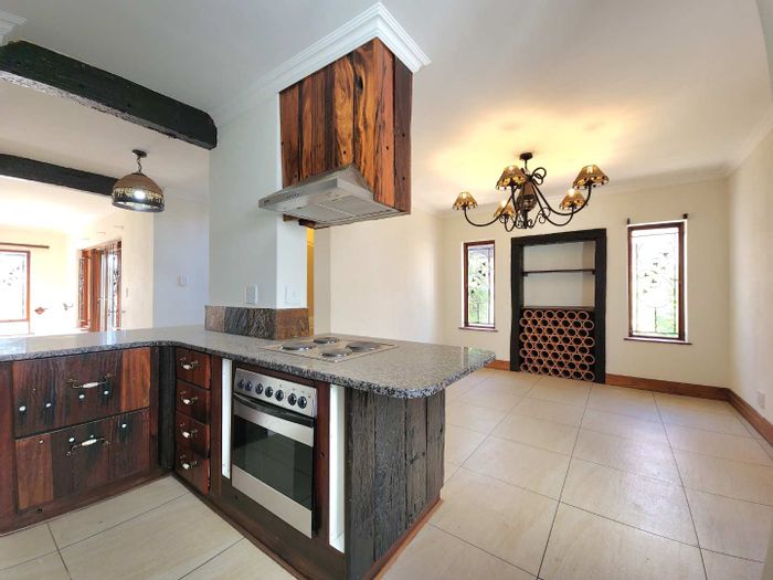 Effortless indoor-outdoor entertaining with covered patio, built-in braai and pool in a sought-after neighbourhood; chef's wooden-look kitchen, second lounge with bar, four beds, 2.5 baths, double garage.