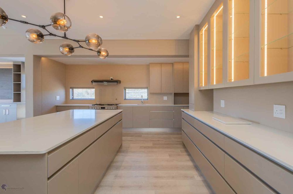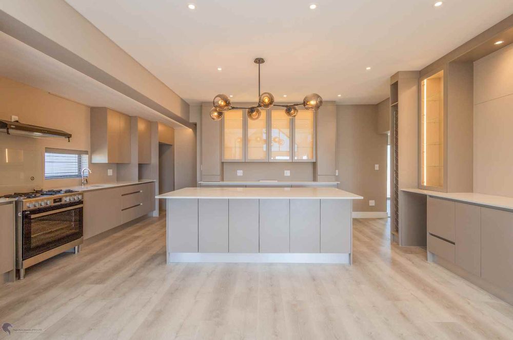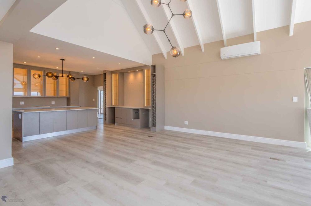 The heart of the home is the bright and airy living area, with double-volume ceilings and large windows that fill the space with natural light. The open-plan layout includes: