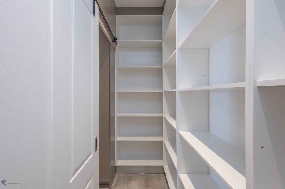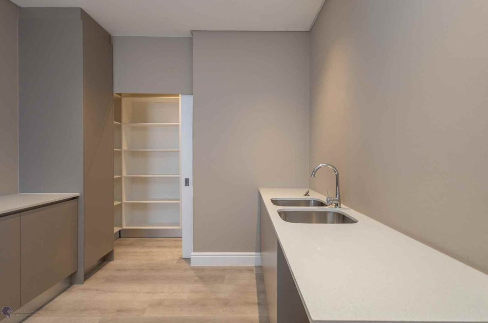 A modern kitchen with a scullery and pantry.