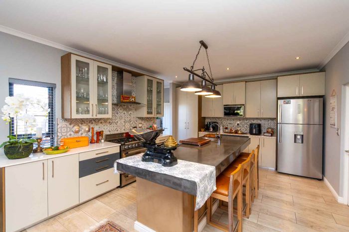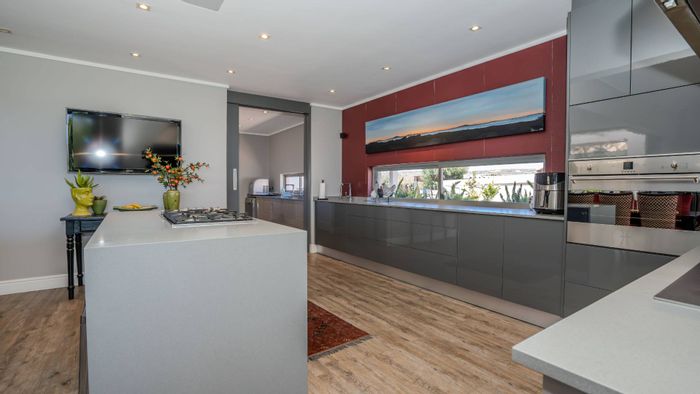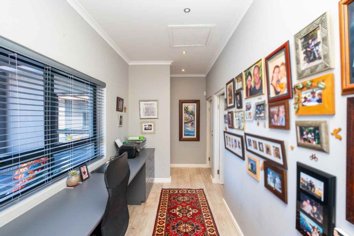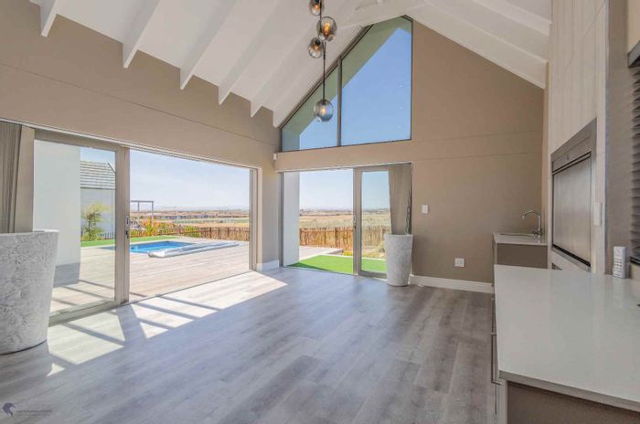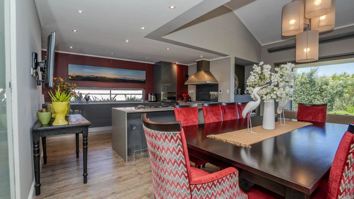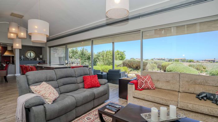 This well-designed family home offers a seamless blend of comfort, functionality, and scenic living. Positioned to capture views of the hillside, golf course, and lagoon, the property is located within the secure Langebaan Country Estate, home to the Gary Player Black Knight-designed golf course.