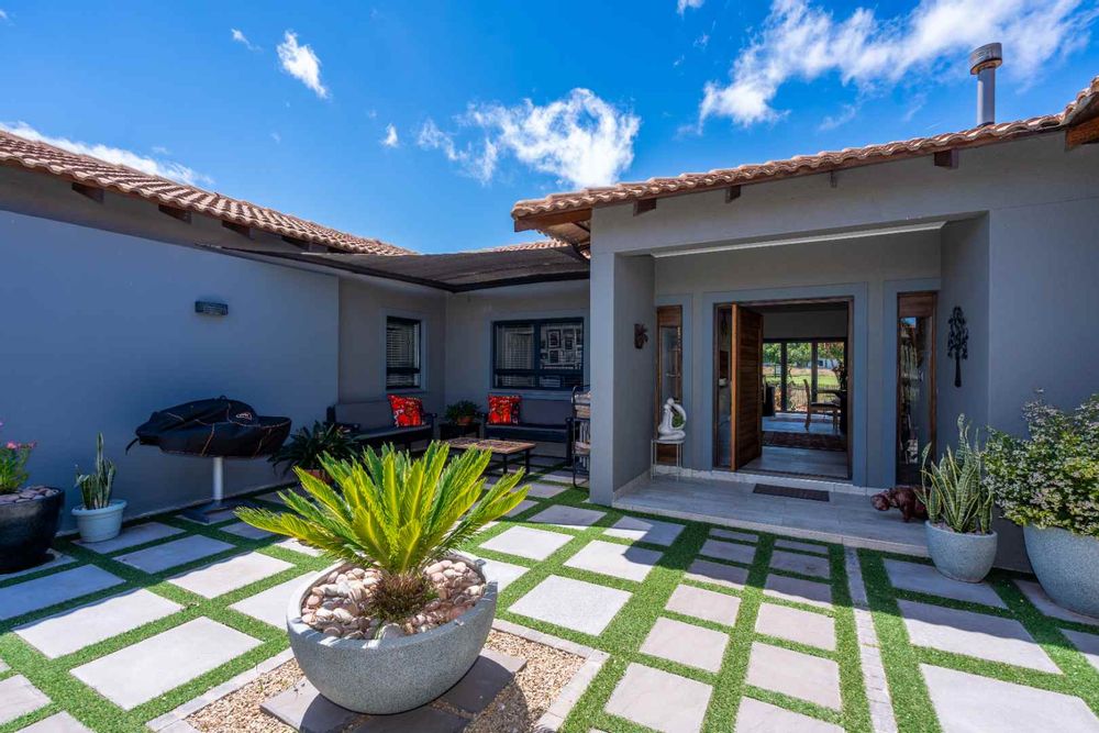 Imagine waking up in a sun-filled, north-facing home with panoramic views of the 16th fairway. This 3-bedroom, 2-bathroom retreat blends modern elegance with effortless comfort, from the gourmet kitchen featuring a SMEG Victoria stove and central island to the open-plan lounge with a cozy wood-burning fireplace and indoor braai—perfect for entertaining or quiet evenings at home.